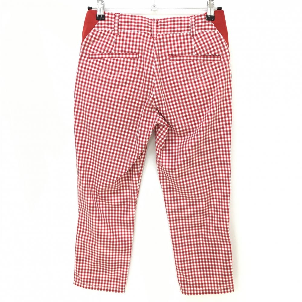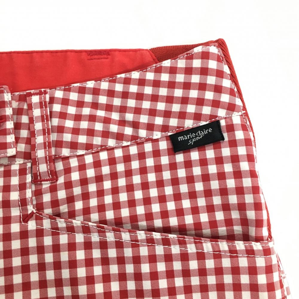 マリクレールスポーツ 半端丈パンツ レッド×白 ギンガムチェック レディース M ゴルフウェア marie claire