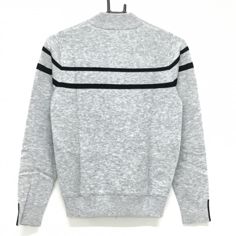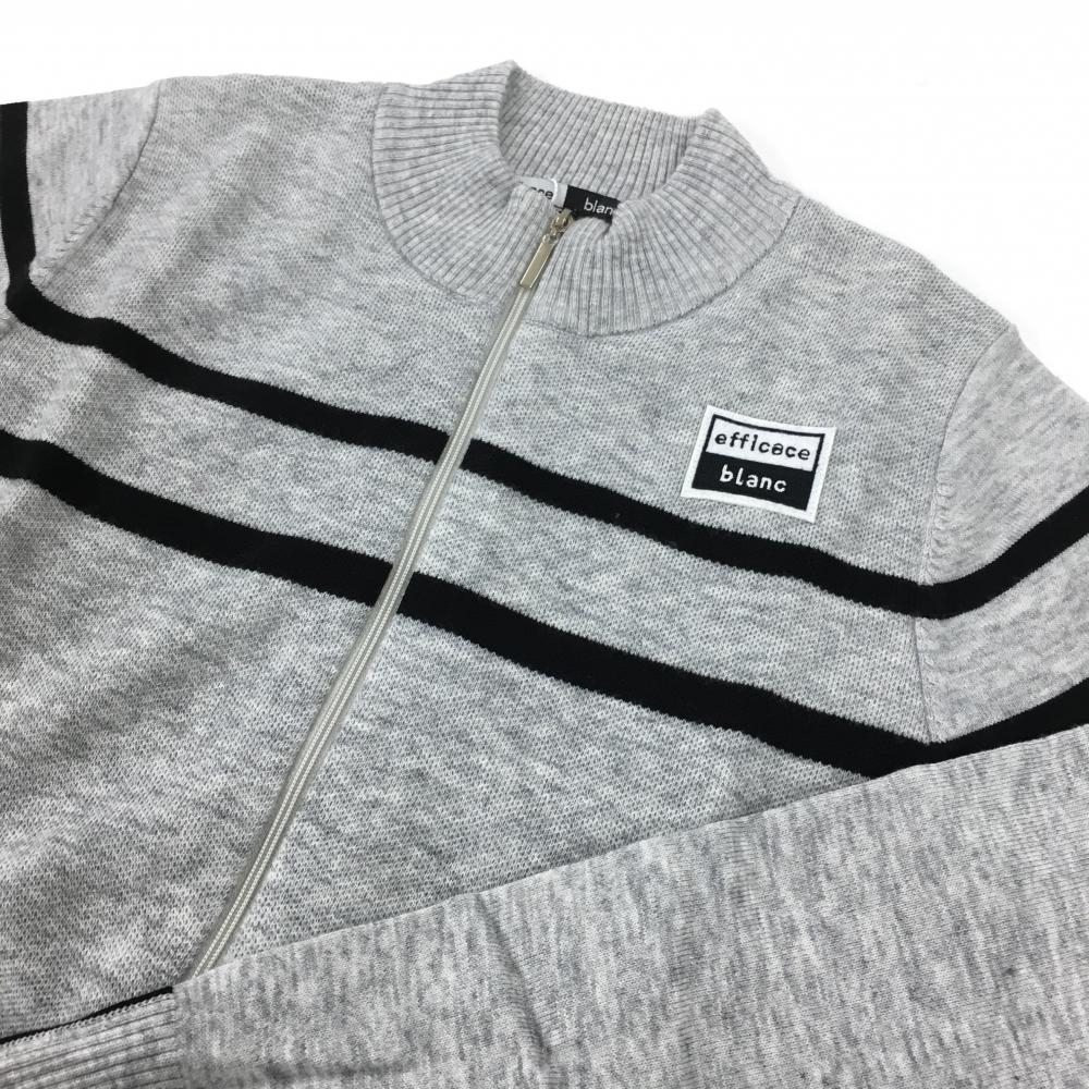 【未使用品】エフィカスブラン ニットジャケット ライトグレー×黒 ウール混 ライン レディース S ゴルフウェア efficace