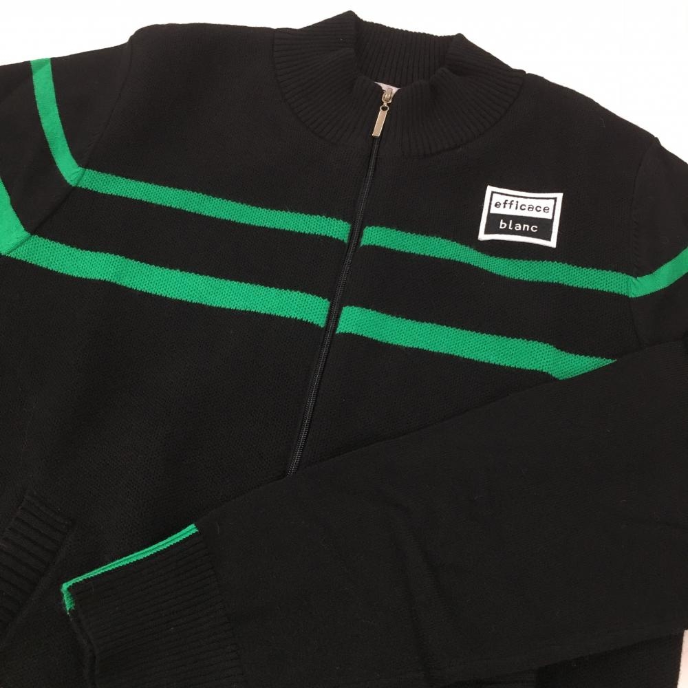 【新品】エフィカスブラン ニットジャケット 黒×グリーン ウール混 ライン レディース S ゴルフウェア efficace