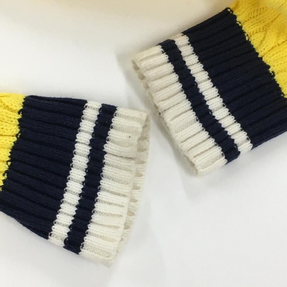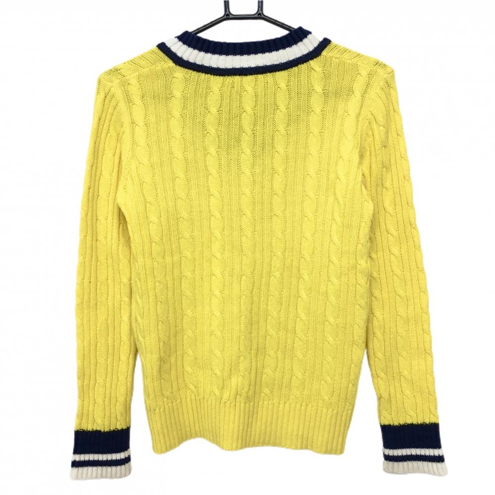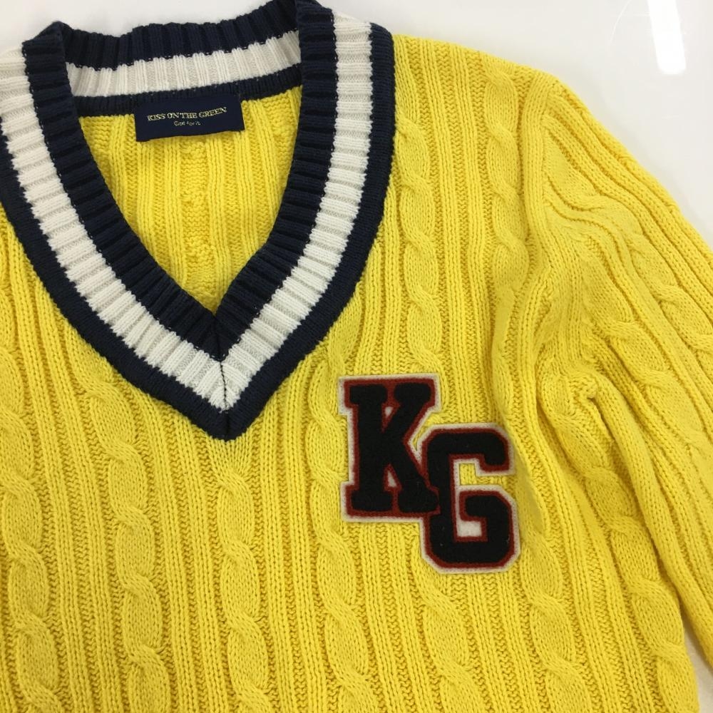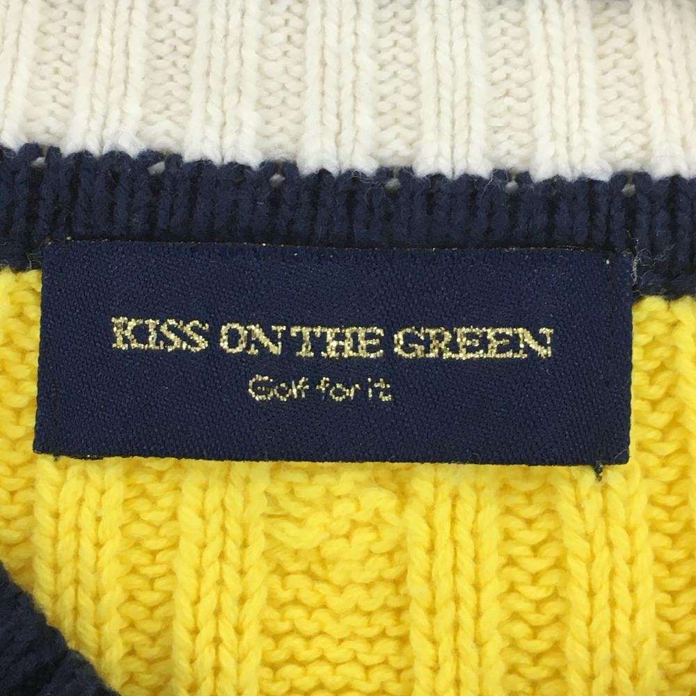 【美品】キスオンザグリーン セーター イエロー×ネイビー ケーブル編み アクリル混 レディース 3(L) ゴルフウェア kiss on the green