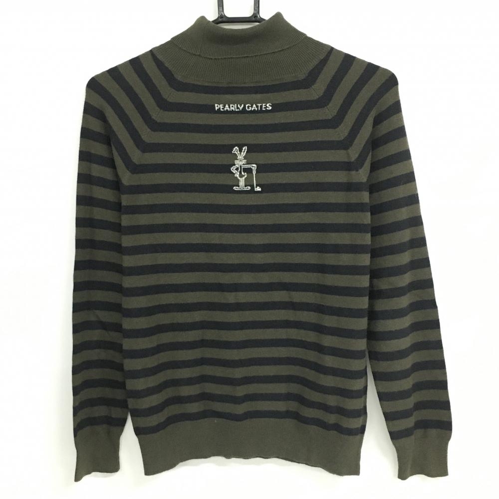 パーリーゲイツ タートルネックセーター カーキ系×ダークネイビー ボーダー ニット レディース 1(M) ゴルフウェア PEARLY GATES