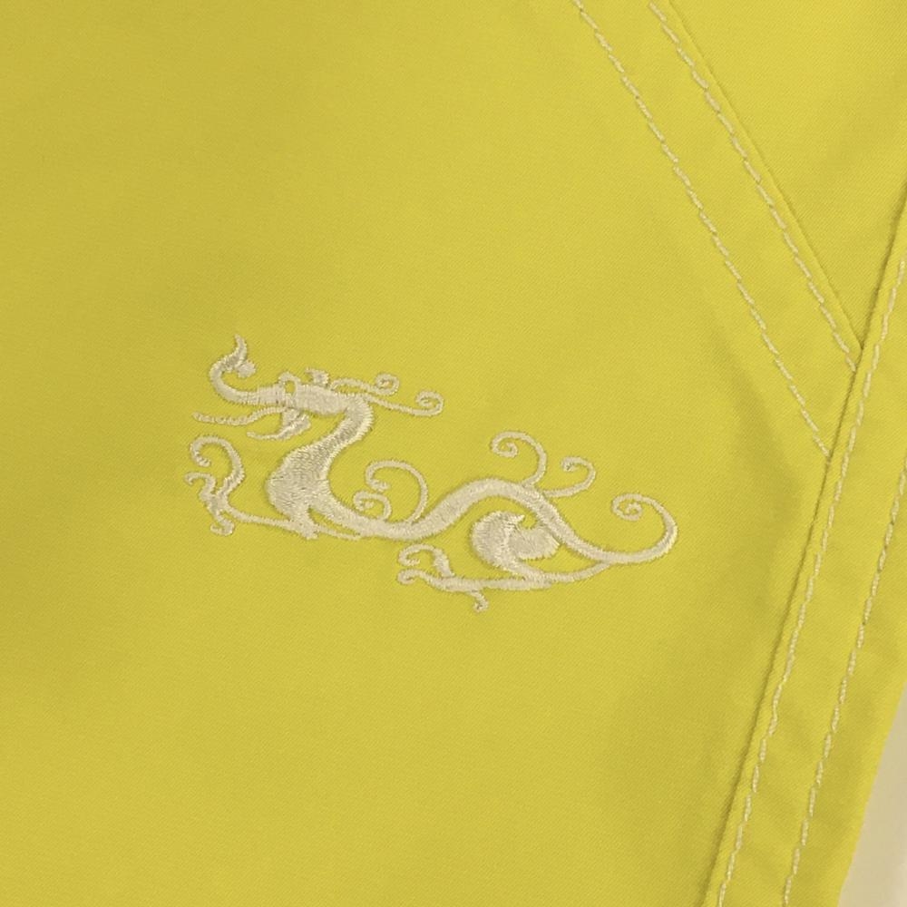 【美品】ダンスウィズドラゴン パンツ イエロー ステッチ白 メンズ 3(L) ゴルフウェア Dance With Dragon