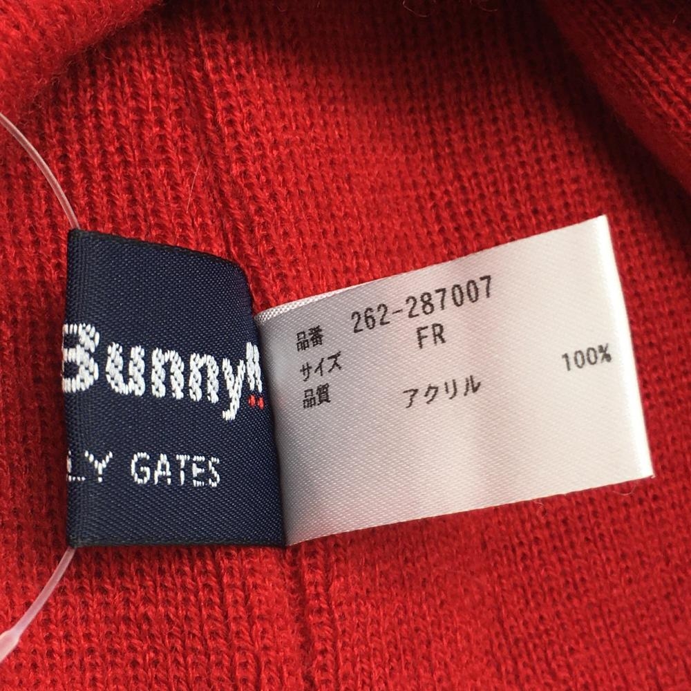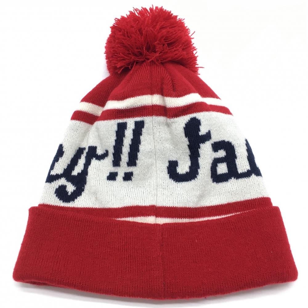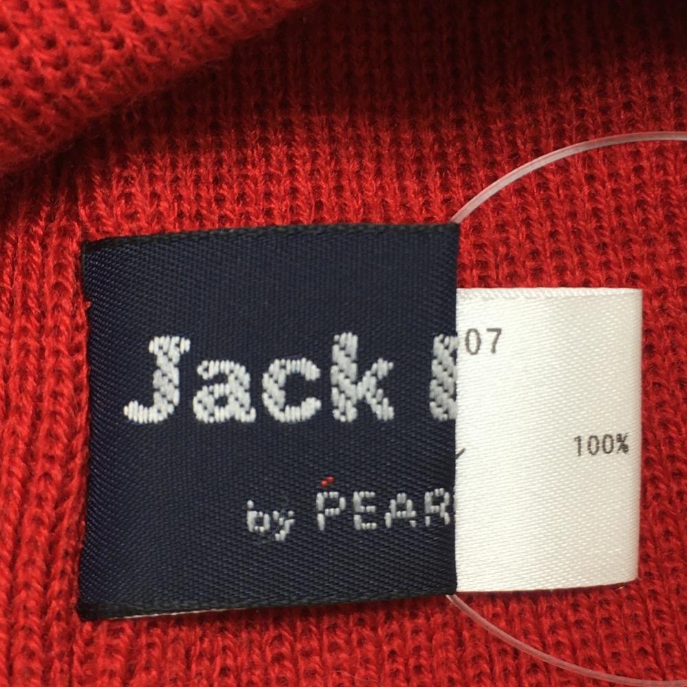 【美品】ジャックバニー ニット帽 レッド×アイボリー ボンボン付き アクリル100% FR ゴルフウェア Jack Bunny