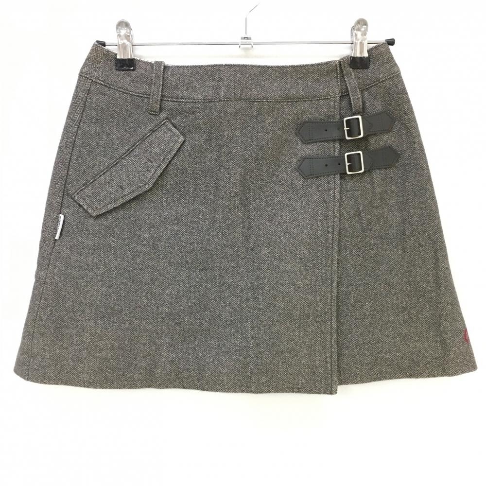 【超美品】マスターバニー スカート ブラウン ヘリンボーン ウール混 裏地付き レディース 0(S) ゴルフウェア MASTER BUNNY EDITION