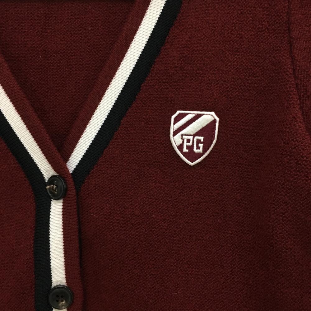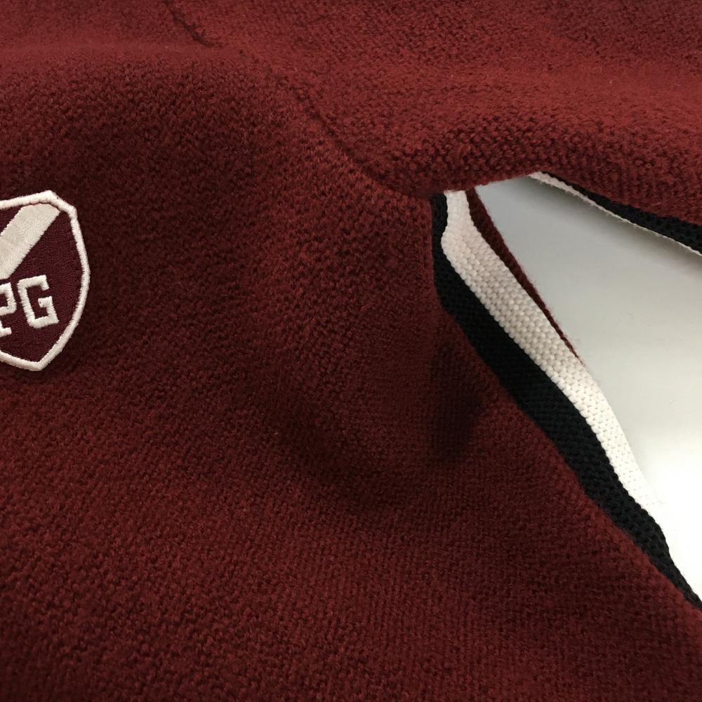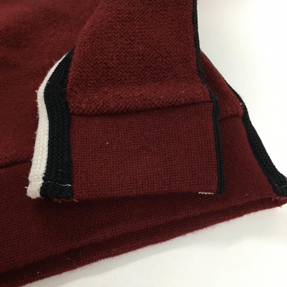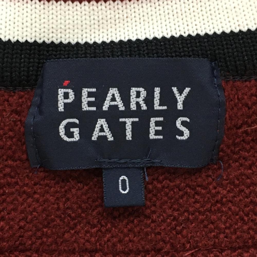 【美品】パーリーゲイツ ニットカーディガン ボルドー×白 ウール混 厚手 袖・サイドライン レディース 0(S) ゴルフウェア PEARLY GATES