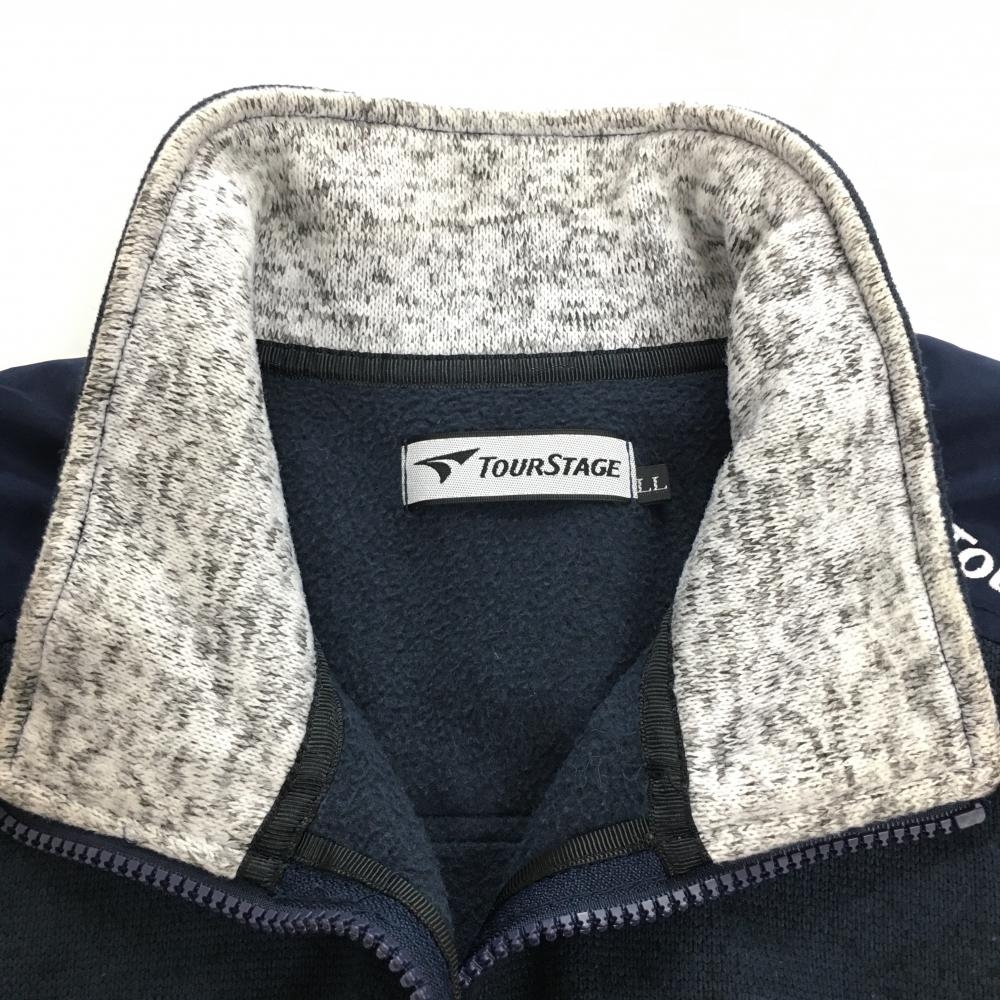 ツアーステージ ニットブルゾン ネイビー ロゴ刺しゅう フリース裏地 メンズ LL ゴルフウェア TOURSTAGE