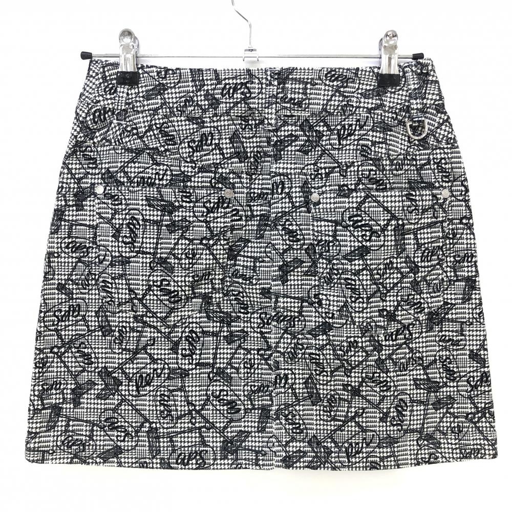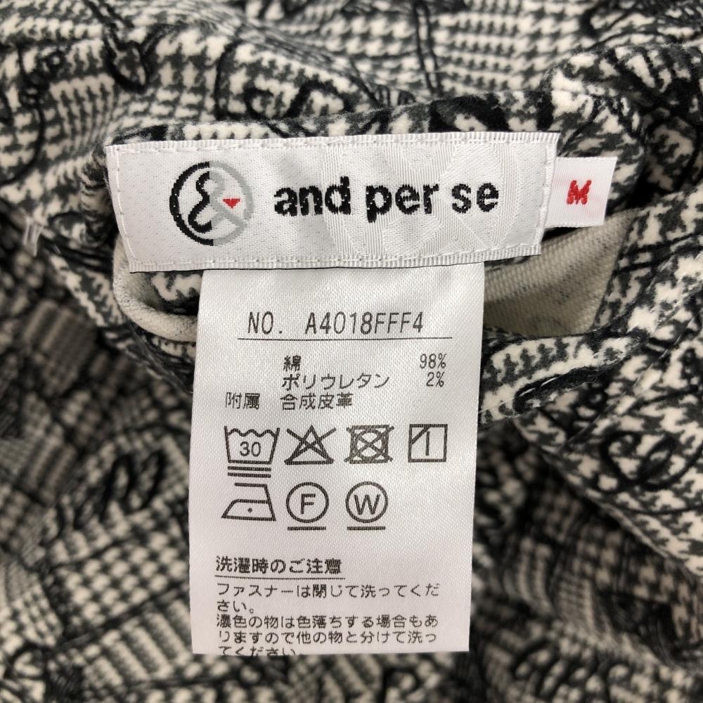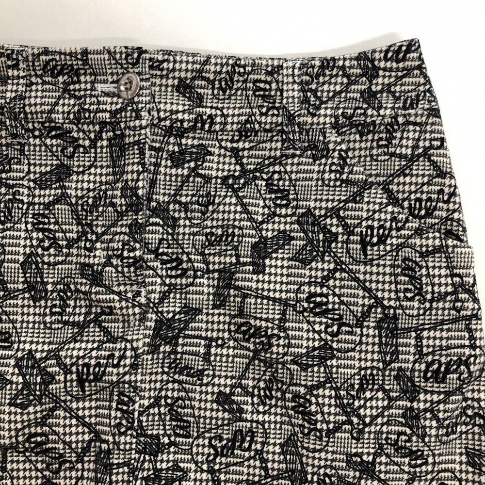 【超美品】アンパスィ スカート 白×黒 グレンチェック 総柄 表微起毛 レディース M ゴルフウェア and per se
