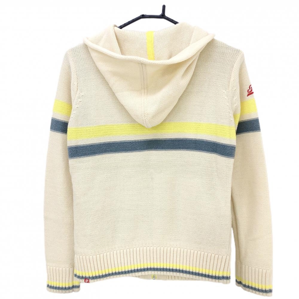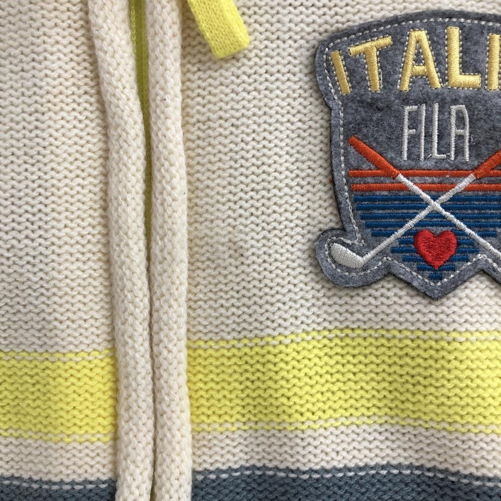 フィラゴルフ フード付きニットジャケット ライトベージュ×グレー ITALIAワッペン レディース L ゴルフウェア FILA GOLF