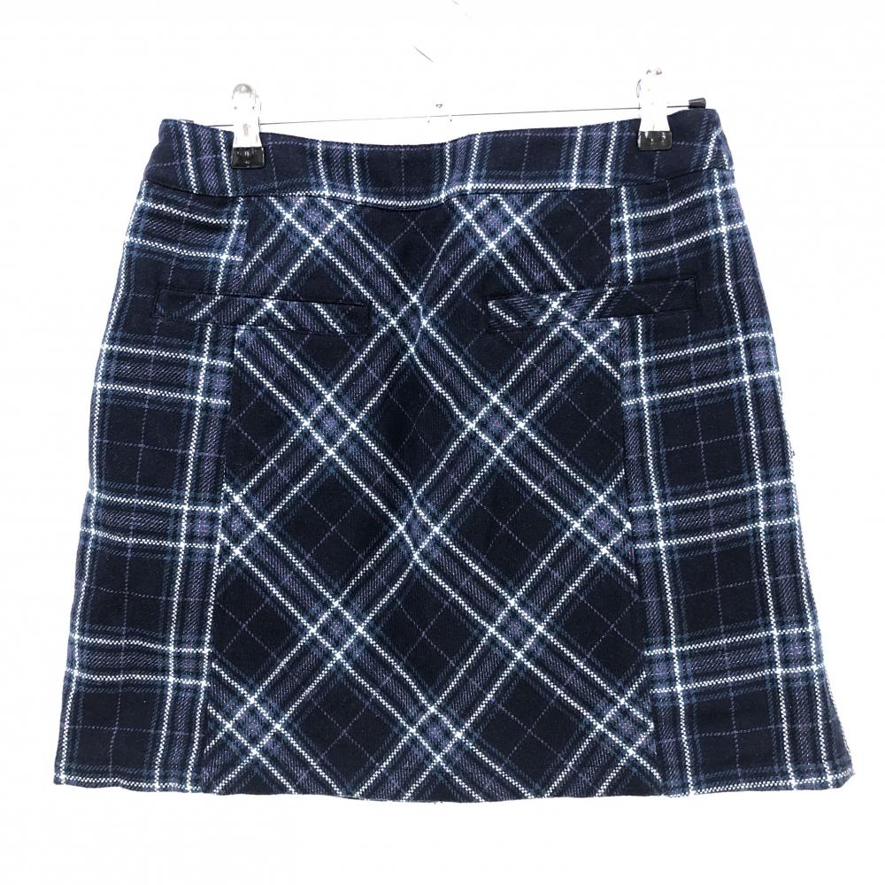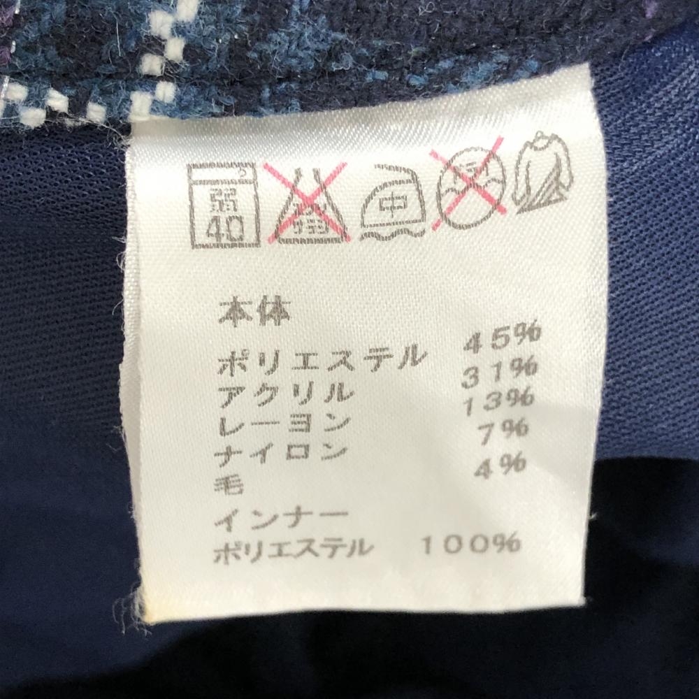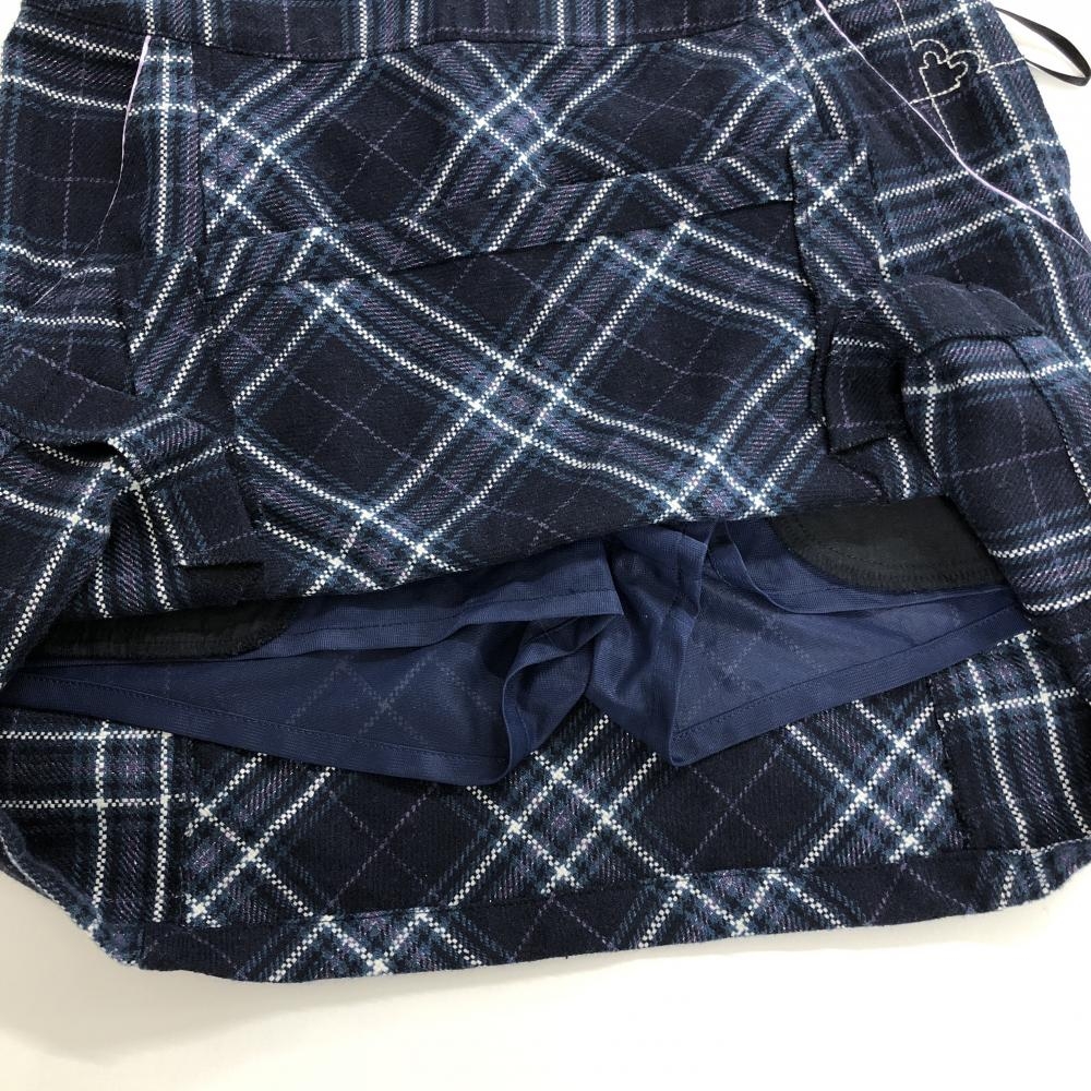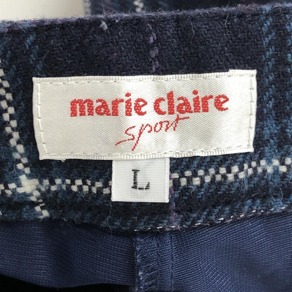 【超美品】マリクレール スカート ネイビー×白 チェック ウール混 内側インナーパンツ レディース L ゴルフウェア marie claire