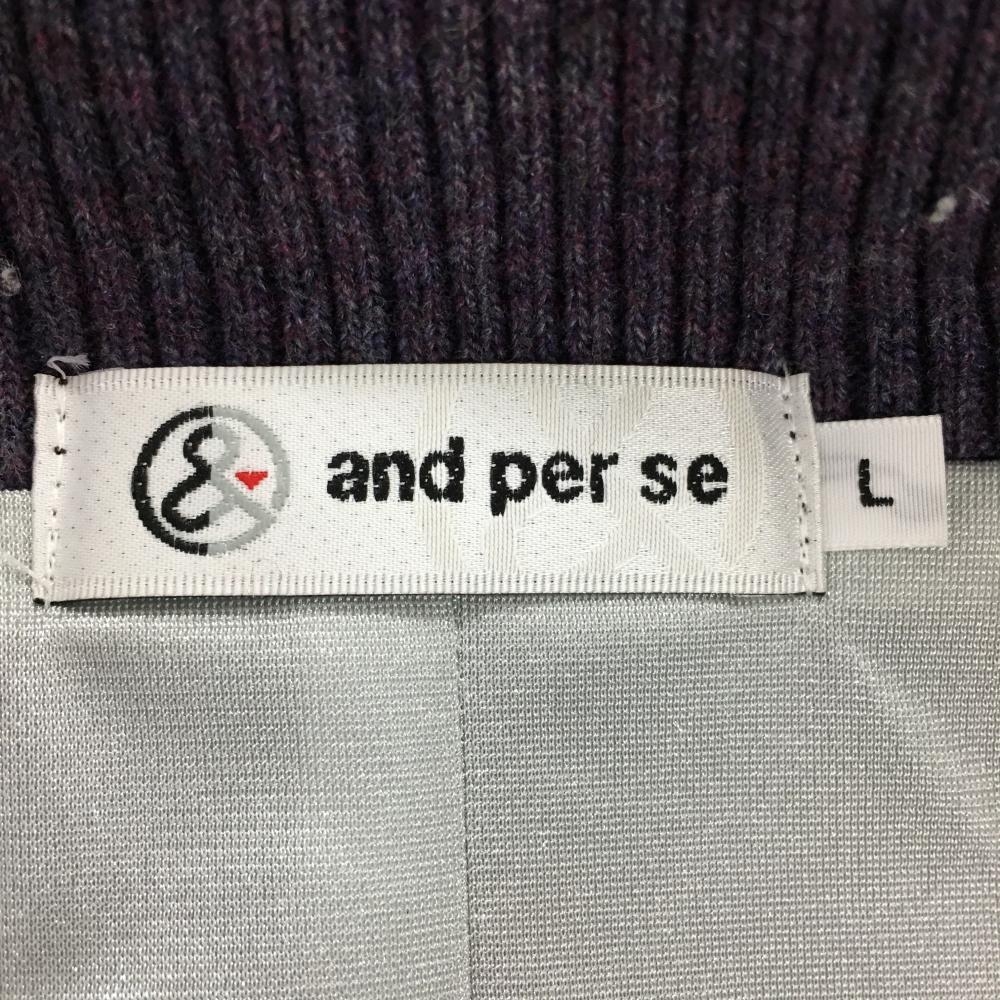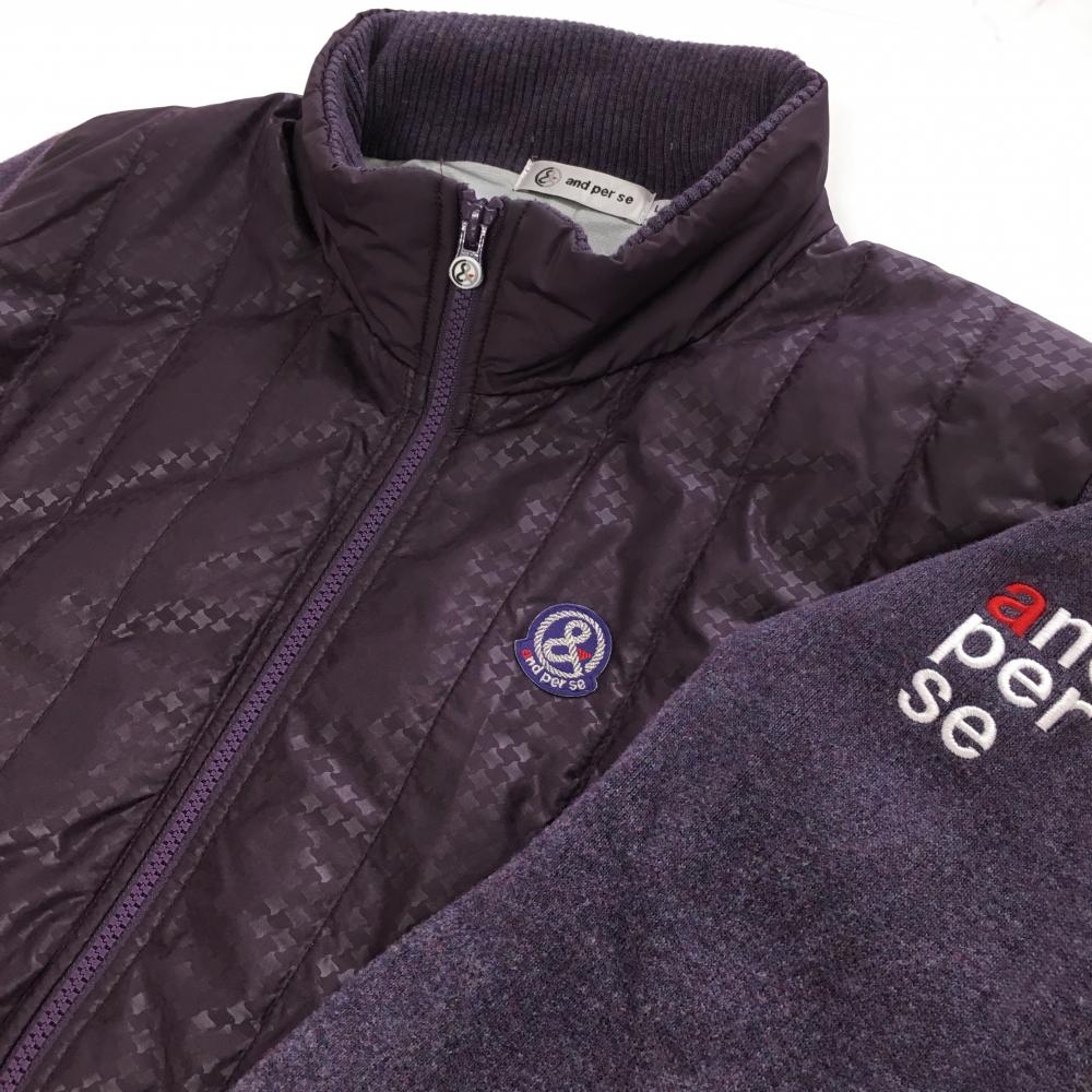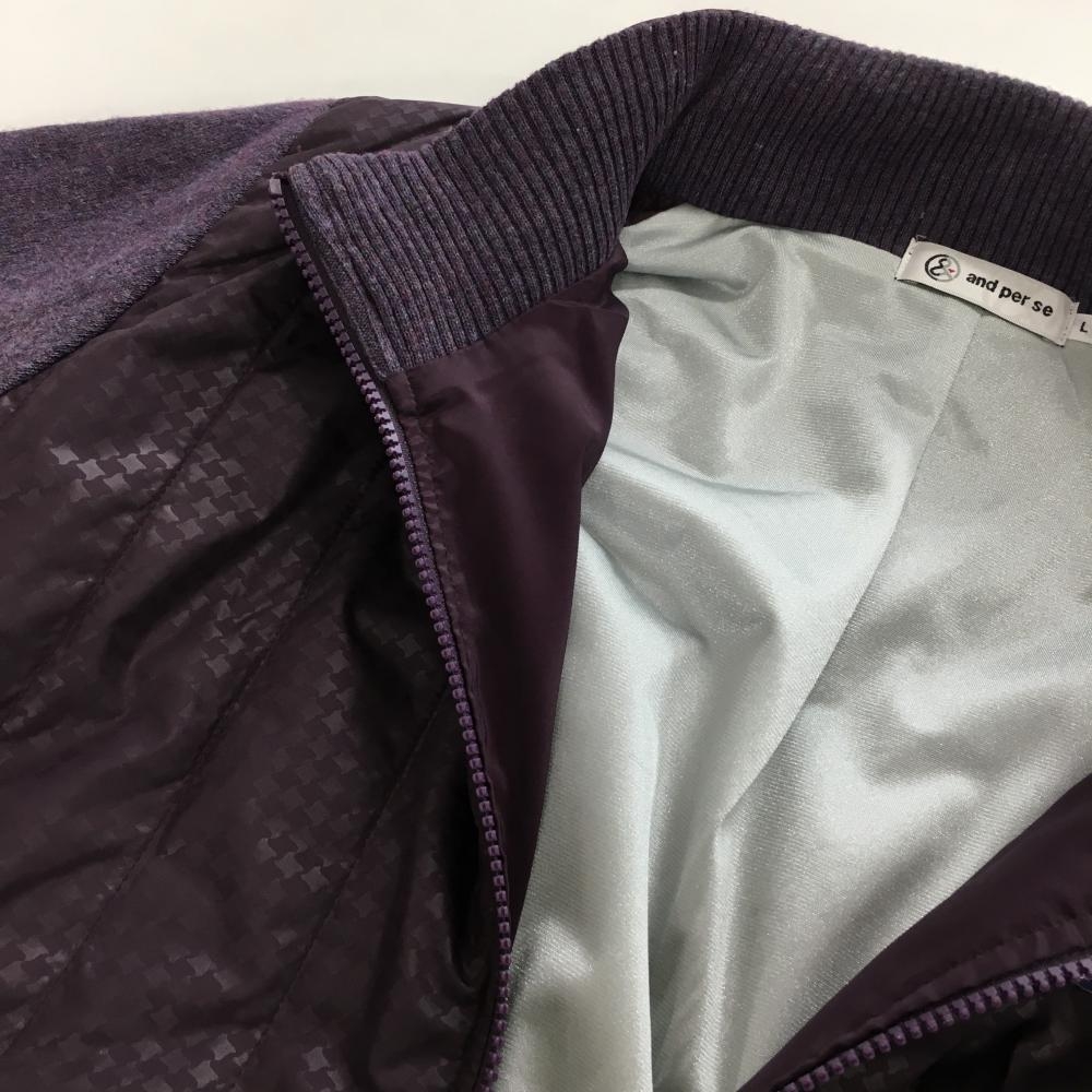 【美品】アンパスィ 中綿ニットジャケット パープル 前身頃千鳥格子 裏地付き メンズ L ゴルフウェア and per se