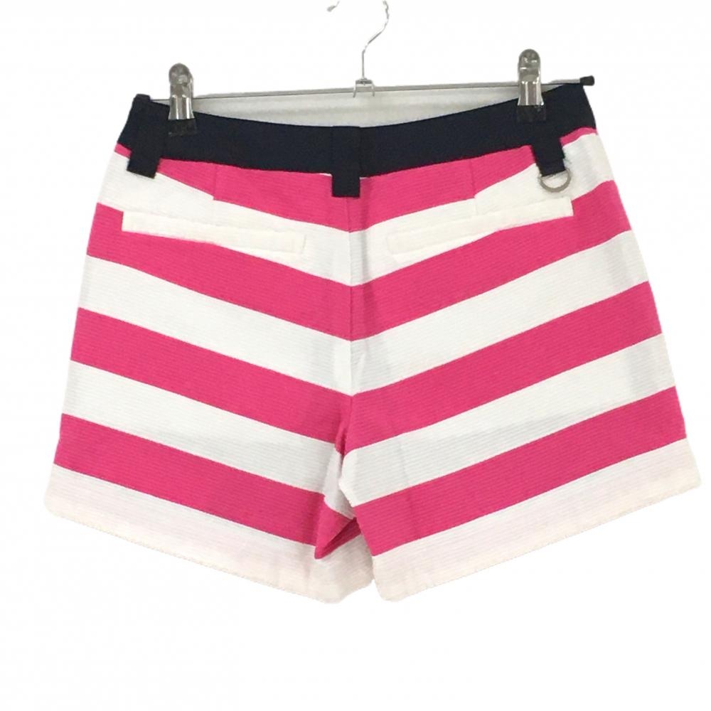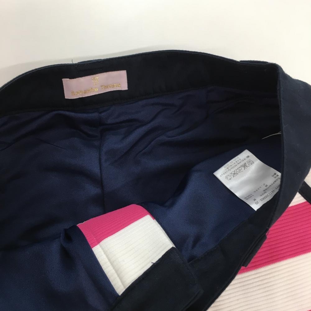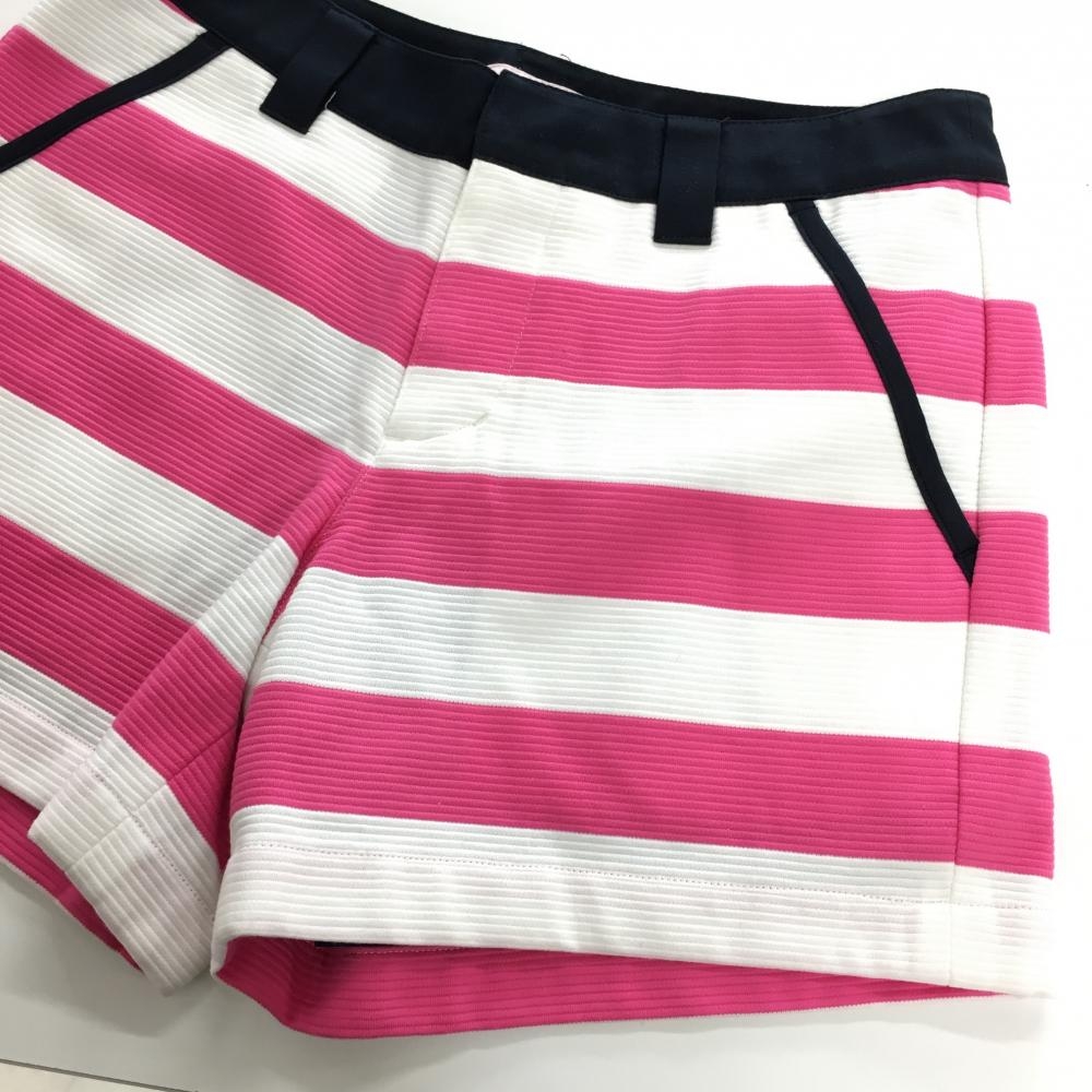 【美品】サマンサタバサ ショートパンツ 白×ピンク ボーダー 織生地 裏地付き レディース M ゴルフウェア Samantha Thavasa