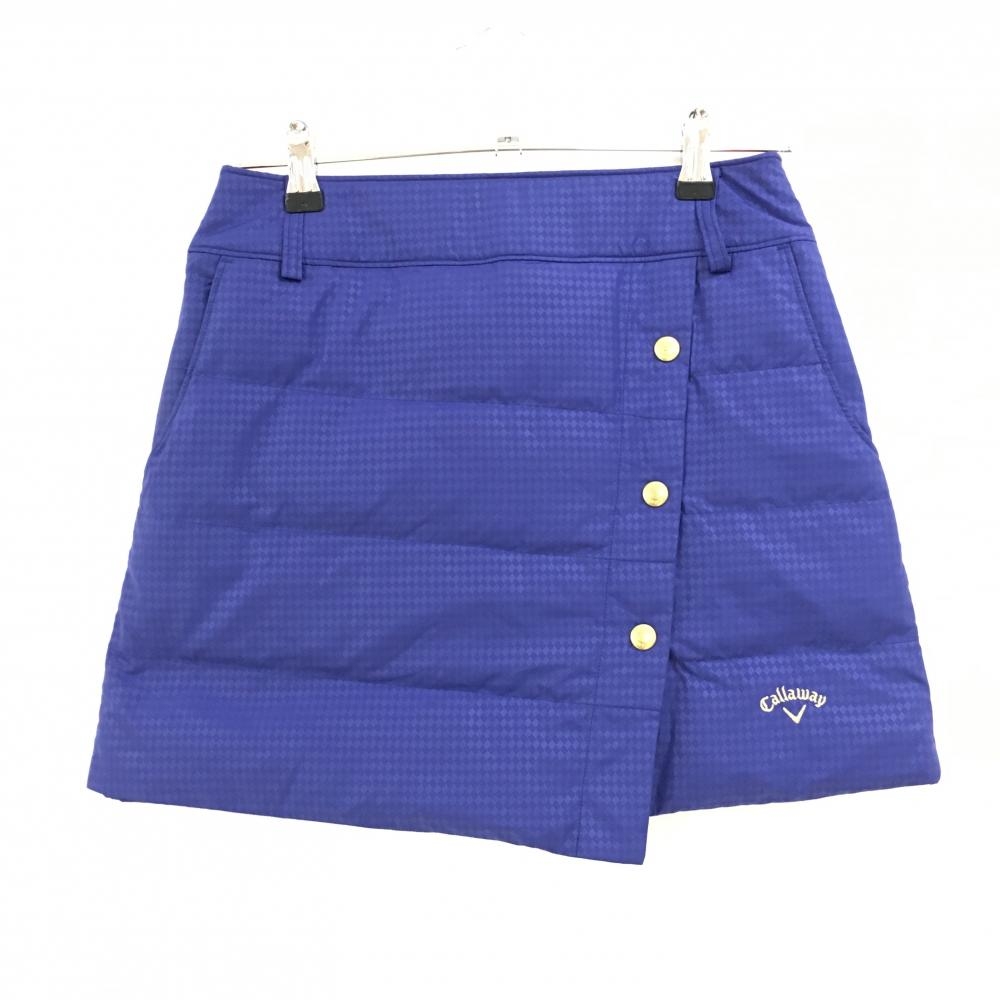 【美品】キャロウェイ ダウンスカート パープル ダイヤ柄 ロゴ刺しゅう ラップスカート風 レディース S ゴルフウェア Callaway