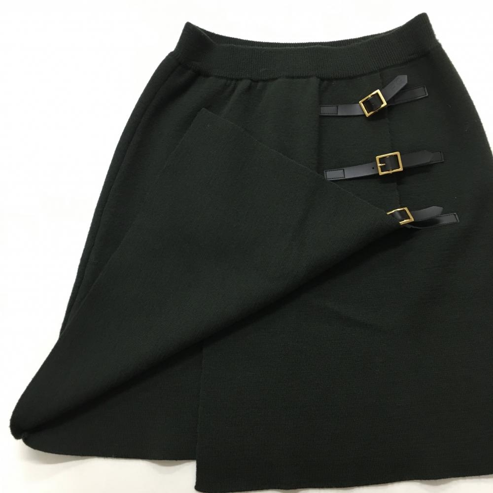【超美品】パーリーゲイツ ニットスカート カーキ 巻きスカート風 ウール100% レディース 0(S) ゴルフウェア PEARLY GATES