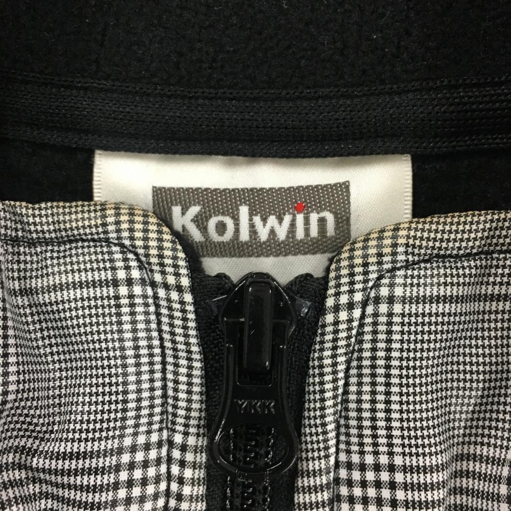 コルウィン 切替ジャケット 黒×白 前身頃チェック フリース レディース L ゴルフウェア Kolwin