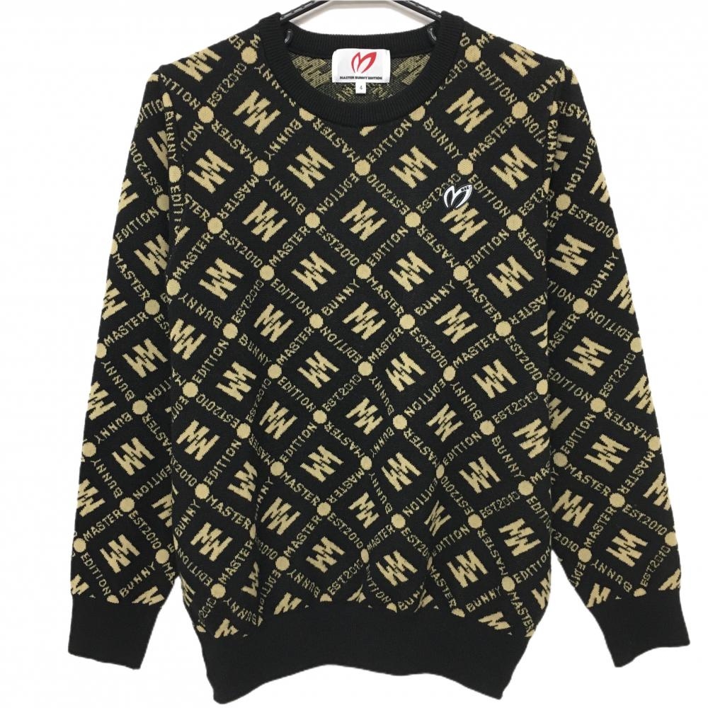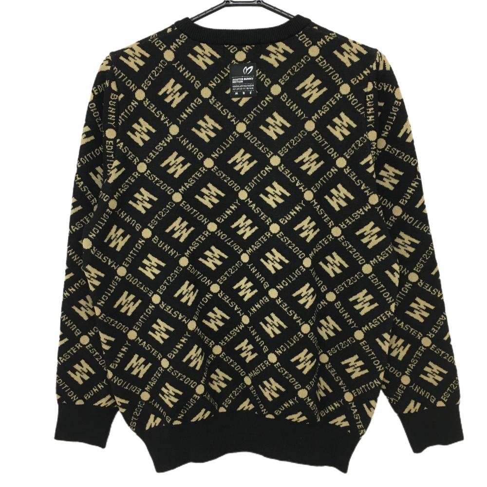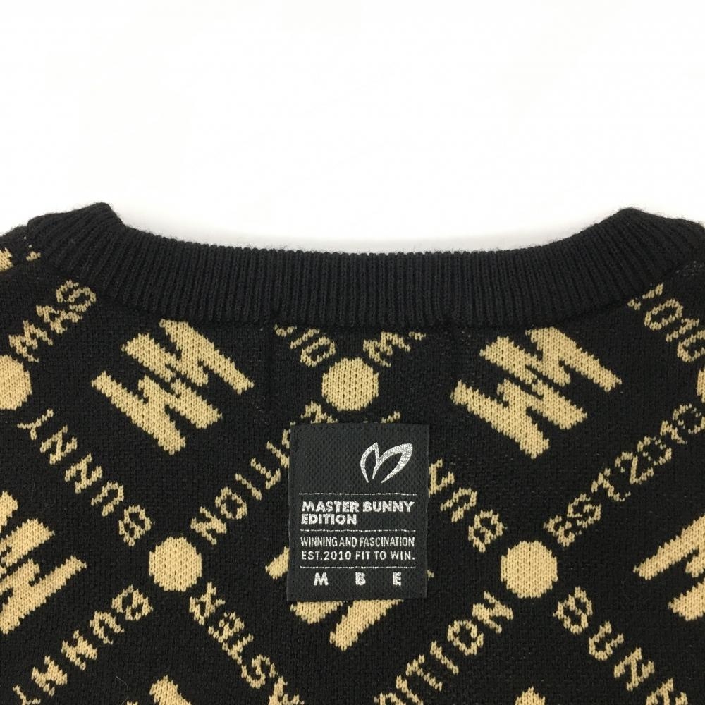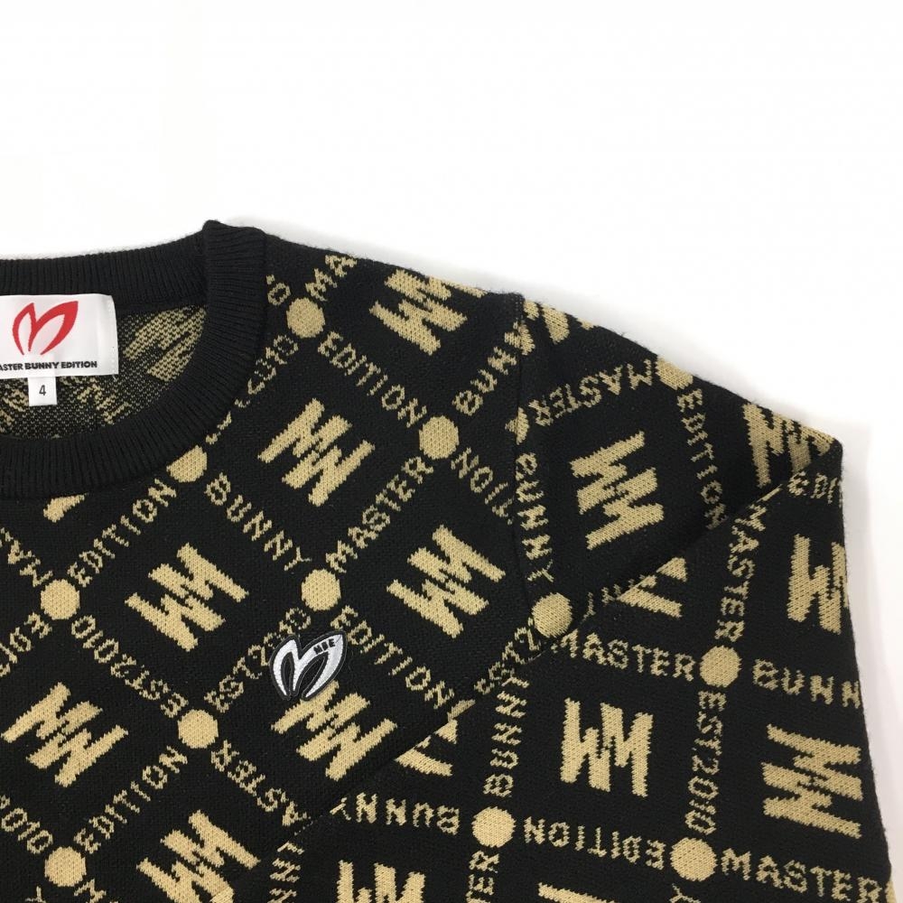 【美品】マスターバニー セーター 黒×ベージュ ロゴ総柄 ウール混 メンズ 4(M) ゴルフウェア 2022年モデル MASTER BUNNY EDITION