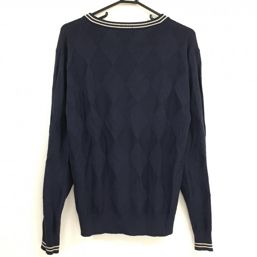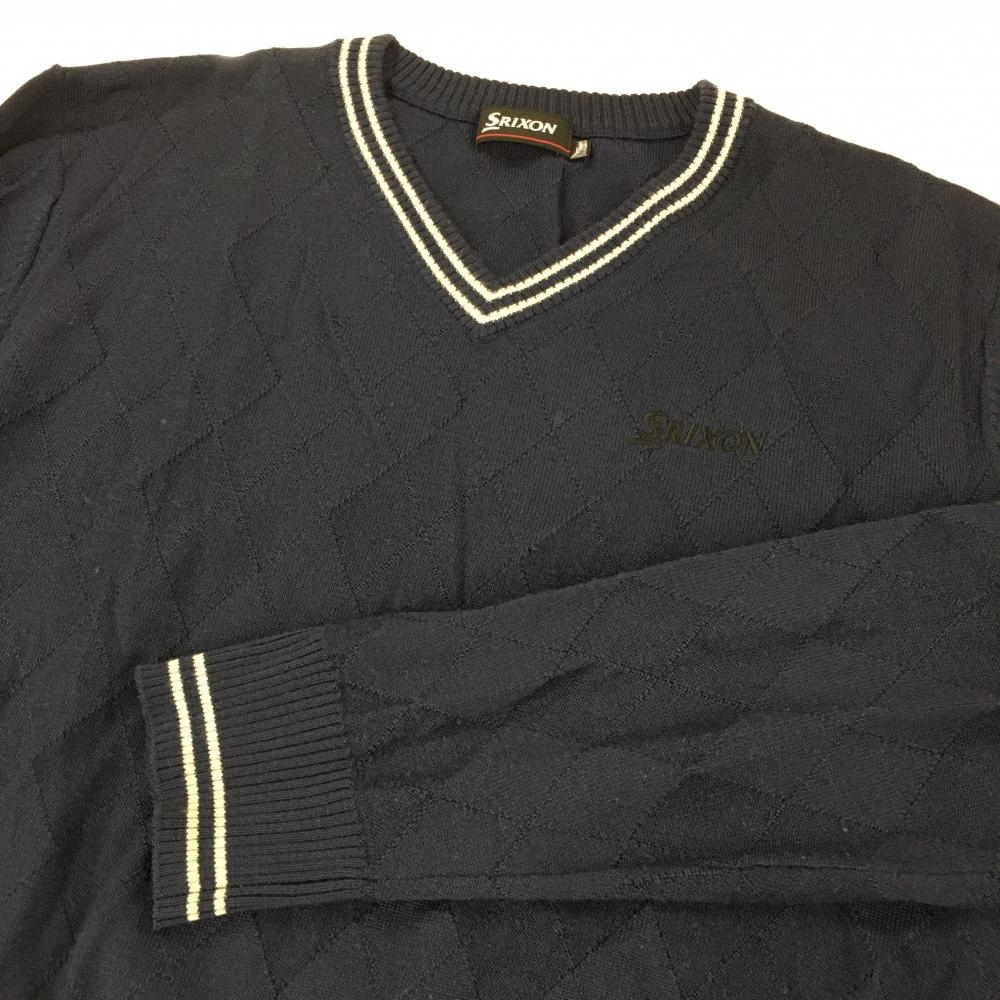 【美品】スリクソン セーター ネイビー アーガイル柄 ウール混 Vネック メンズ L ゴルフウェア SRIXON