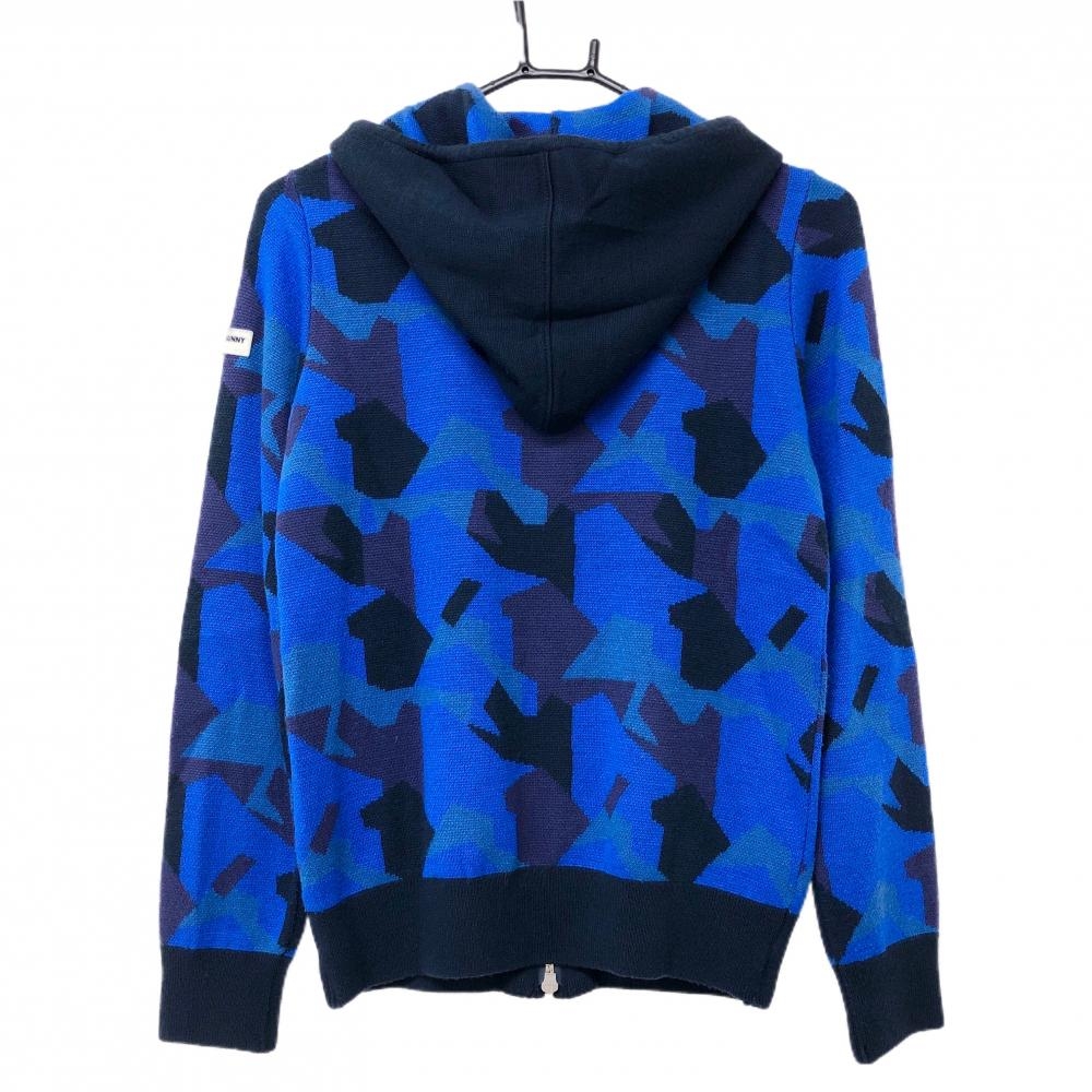 【超美品】マスターバニー ニットパーカー ブルー×パープル 総柄 ブルゾン レディース 0(S) ゴルフウェア MASTER BUNNY EDITION