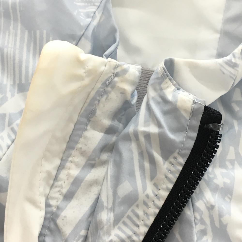 ミズノ ジップパーカー ライトブルー×白 上部総柄 裏地微起毛 ブルゾン レディース S ゴルフウェア MIZUNO