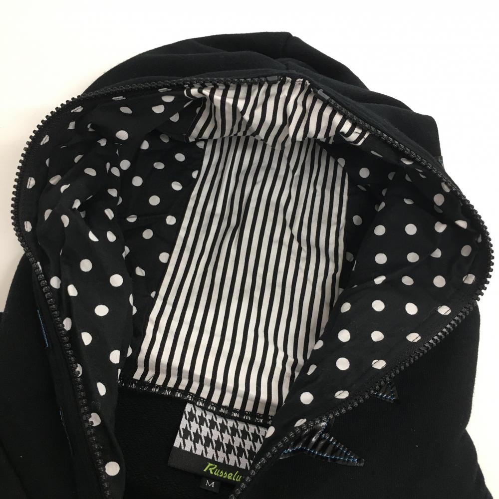 【美品】ラッセルノ ジップパーカー 黒×白 ルチャマスク 袖異素材ライン ブルゾン メンズ M ゴルフウェア RUSSELUNO