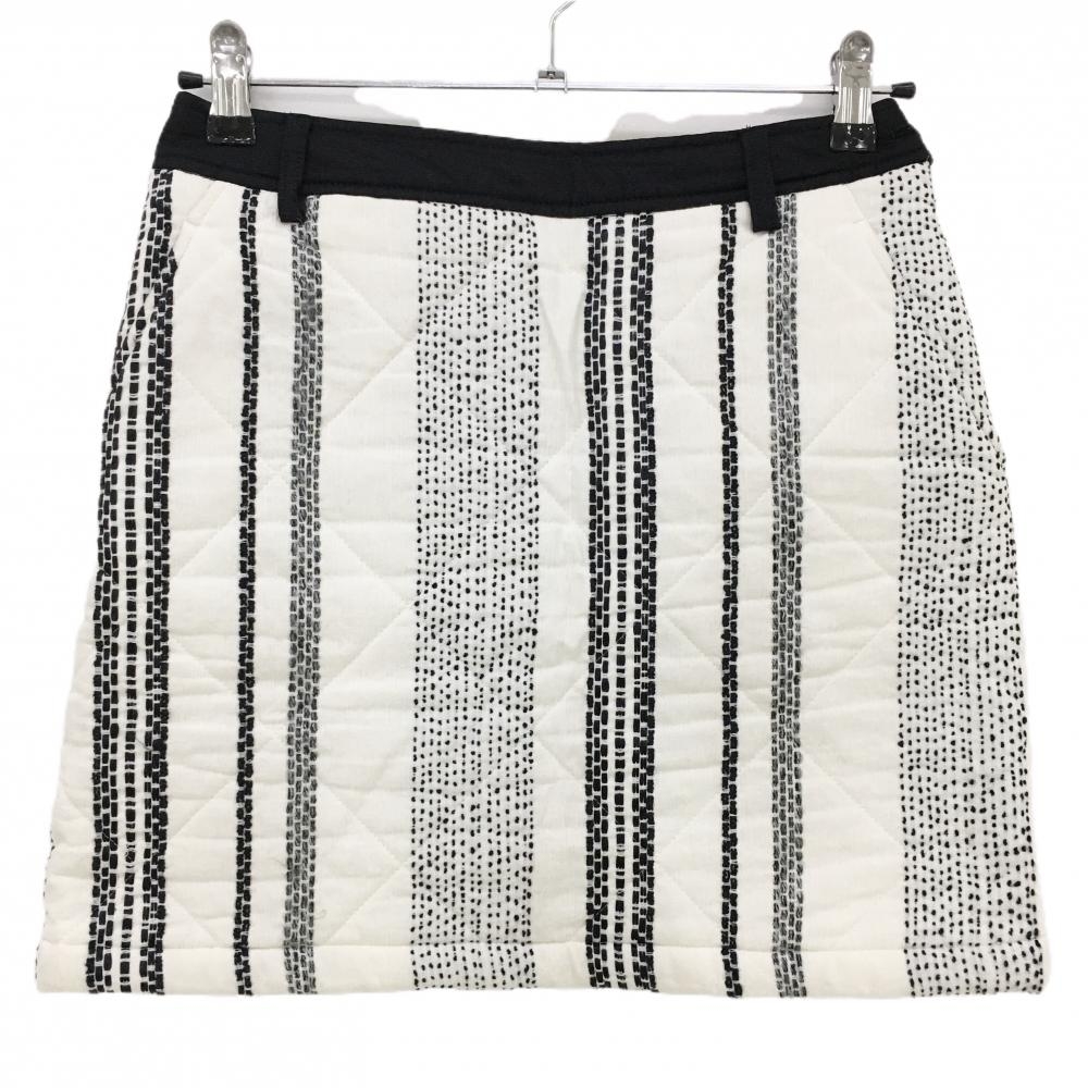 【美品】キャロウェイ 中綿スカート 白×黒 キルティング 織生地 ストライプ調 レディース M ゴルフウェア Callaway
