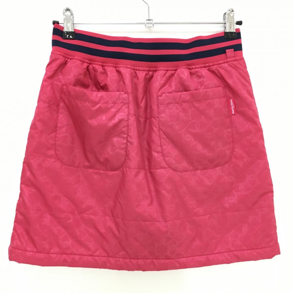 マリクレール 中綿スカート レッドピンク×ネイビー バックロゴ ウエストゴム レディース M ゴルフウェア marie claire