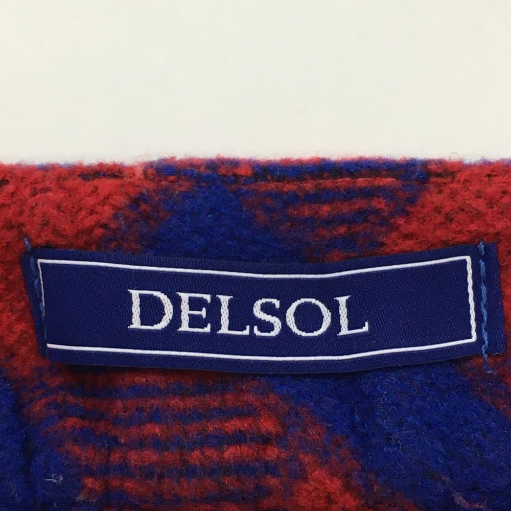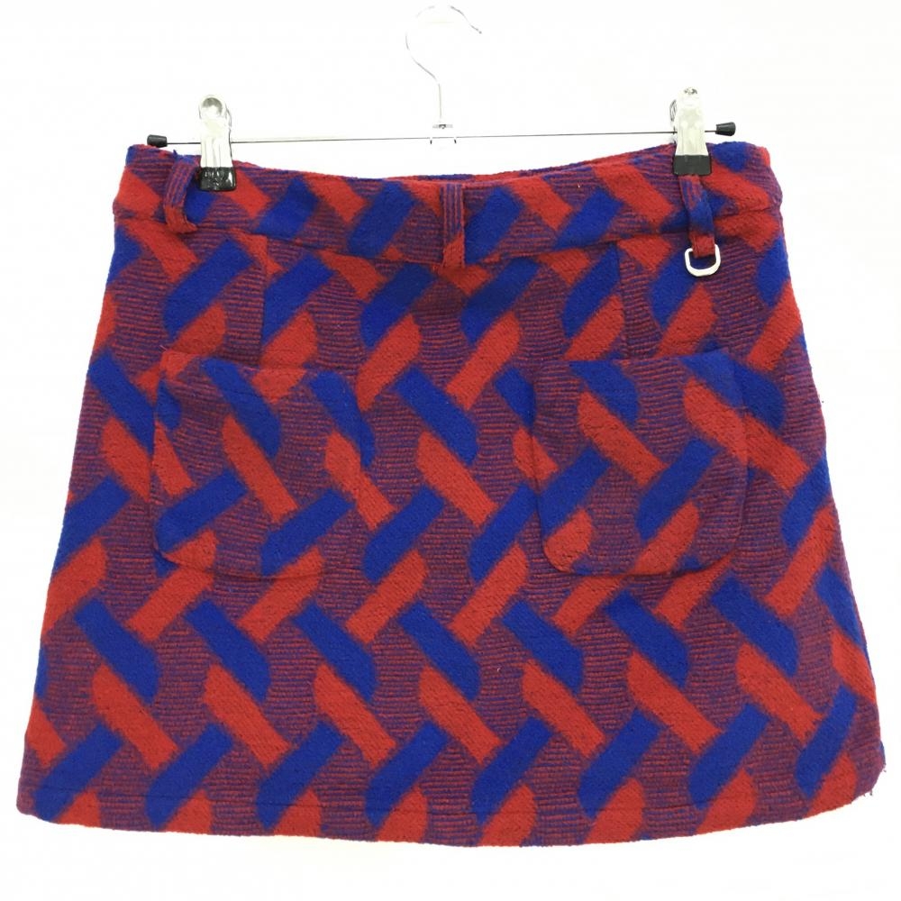 【美品】デルソル スカート レッド×ブルー 総柄 表起毛 レディース M ゴルフウェア DELSOL