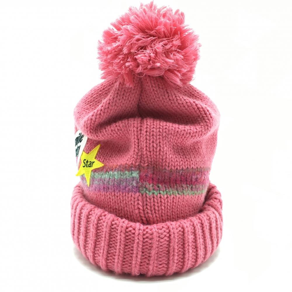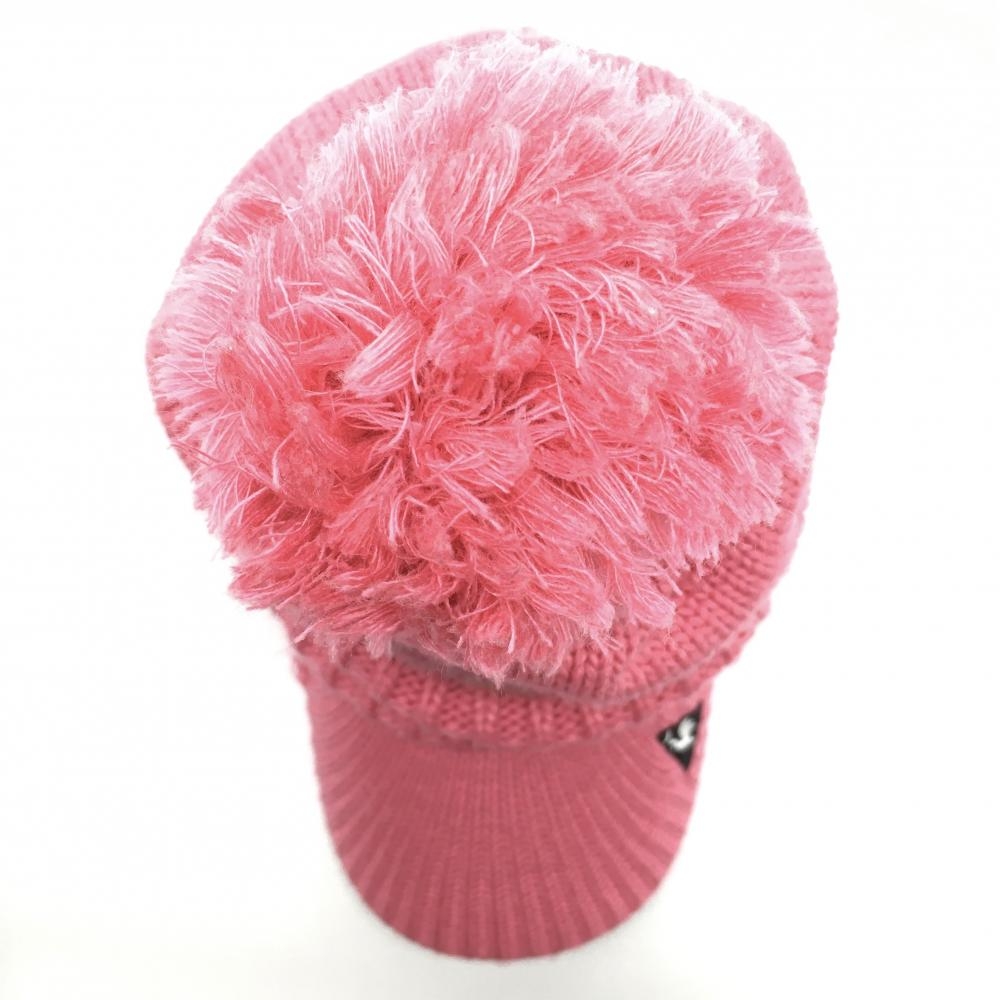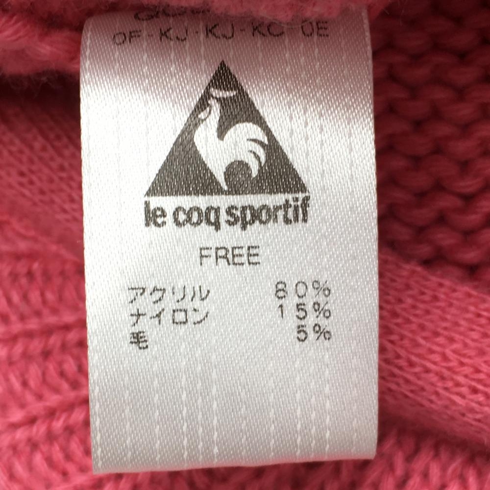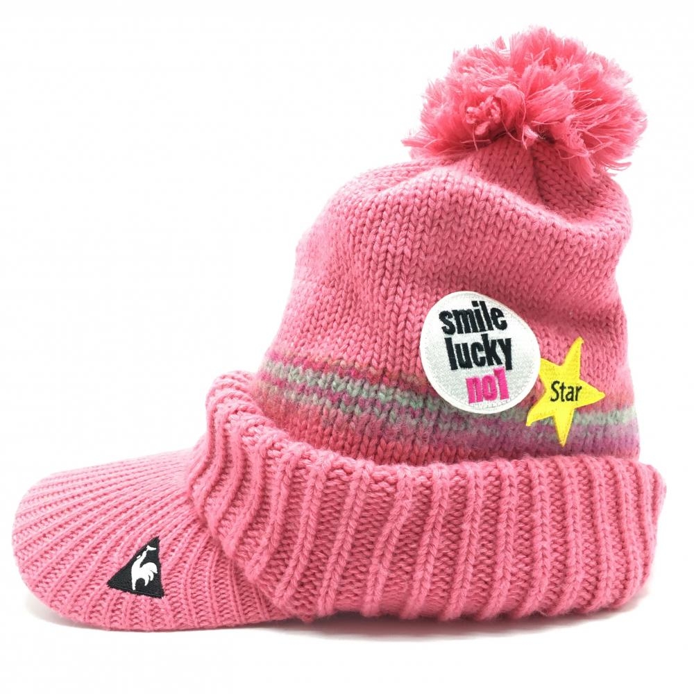 【美品】ルコック つば付ニット帽 ピンク 星ワッペン ウール混 ボンボン付 レディース FREE ゴルフウェア le coq sportif