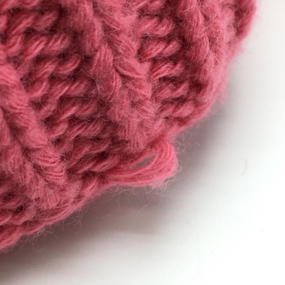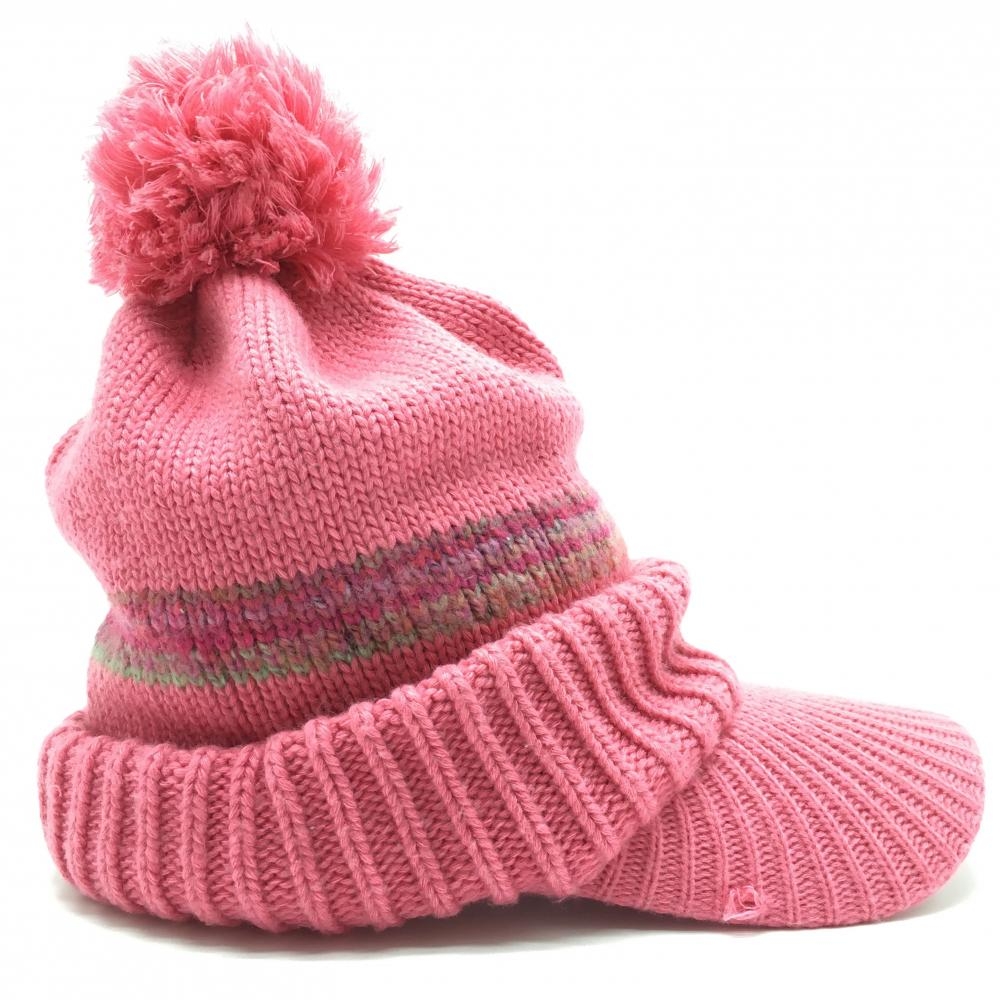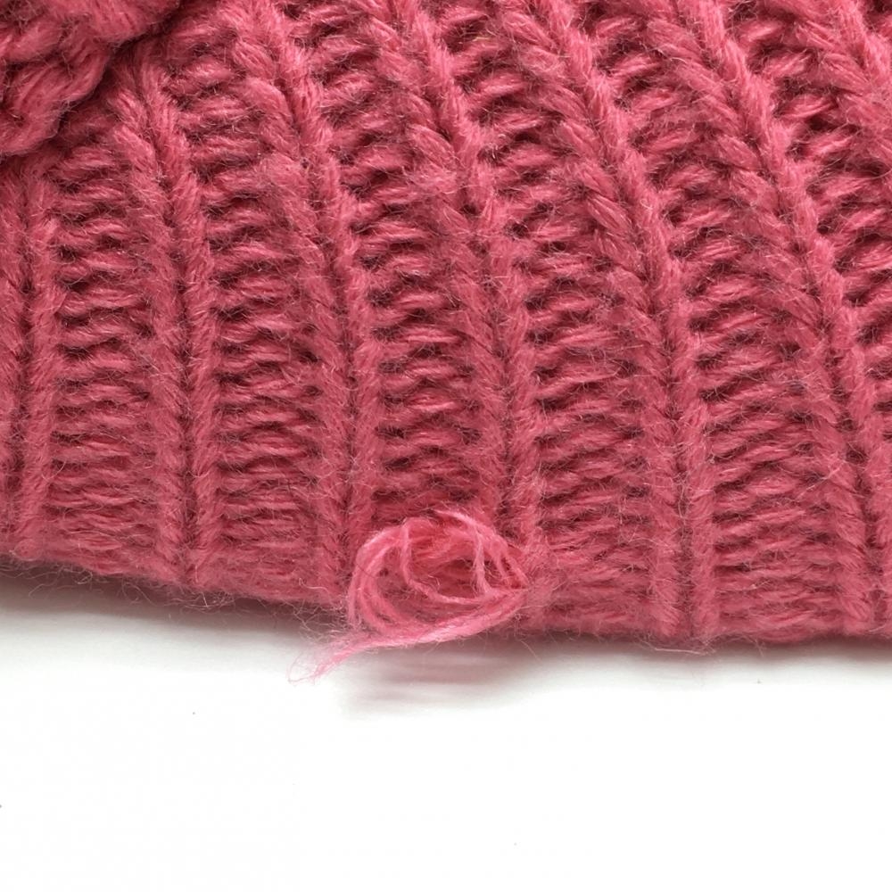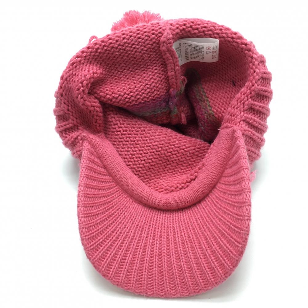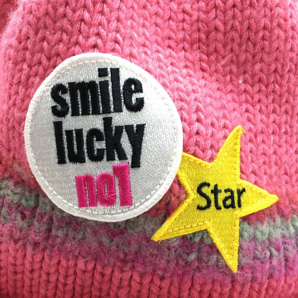 【美品】ルコック つば付ニット帽 ピンク 星ワッペン ウール混 ボンボン付 レディース FREE ゴルフウェア le coq sportif