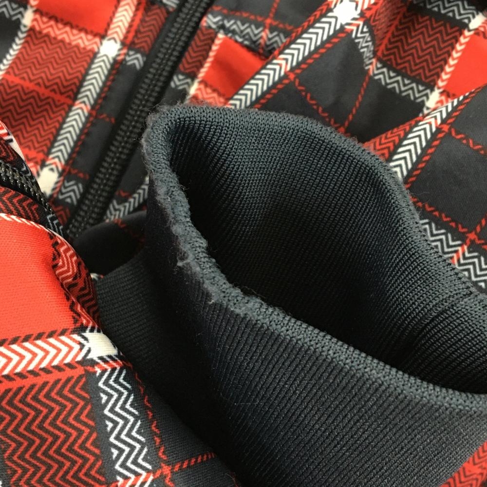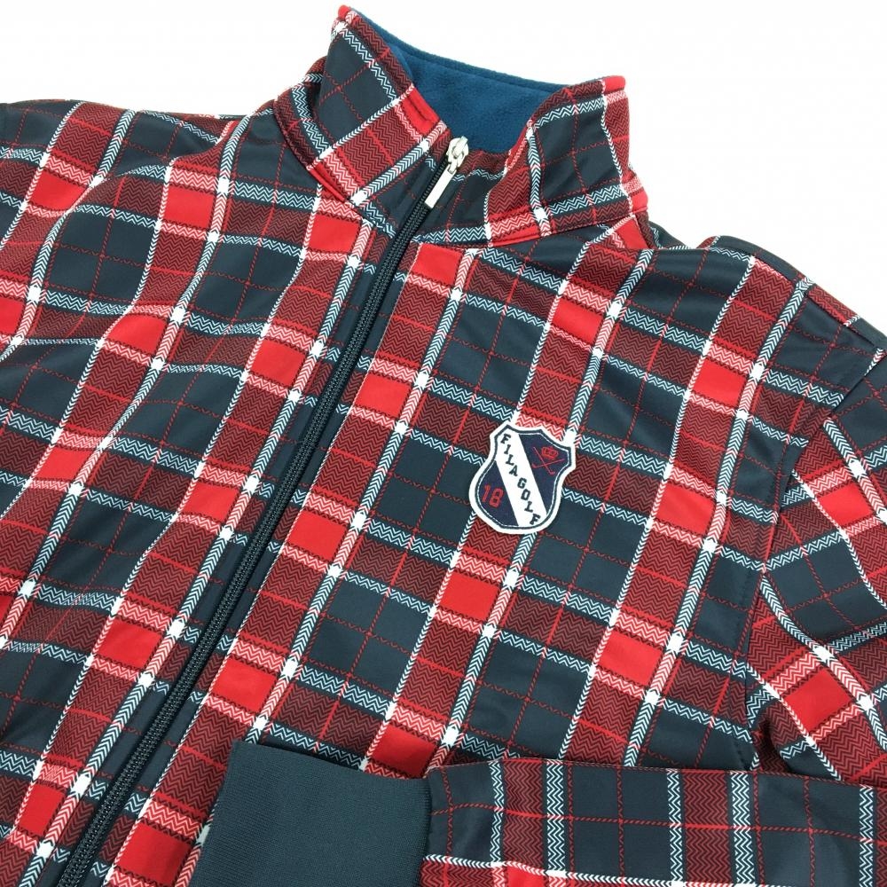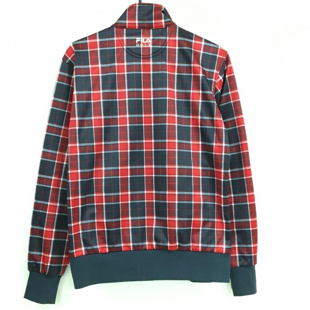 【美品】フィラゴルフ ジャケットブルゾン レッド×ネイビー チェック ワッペン 裏フリース メンズ M ゴルフウェア FILA GOLF