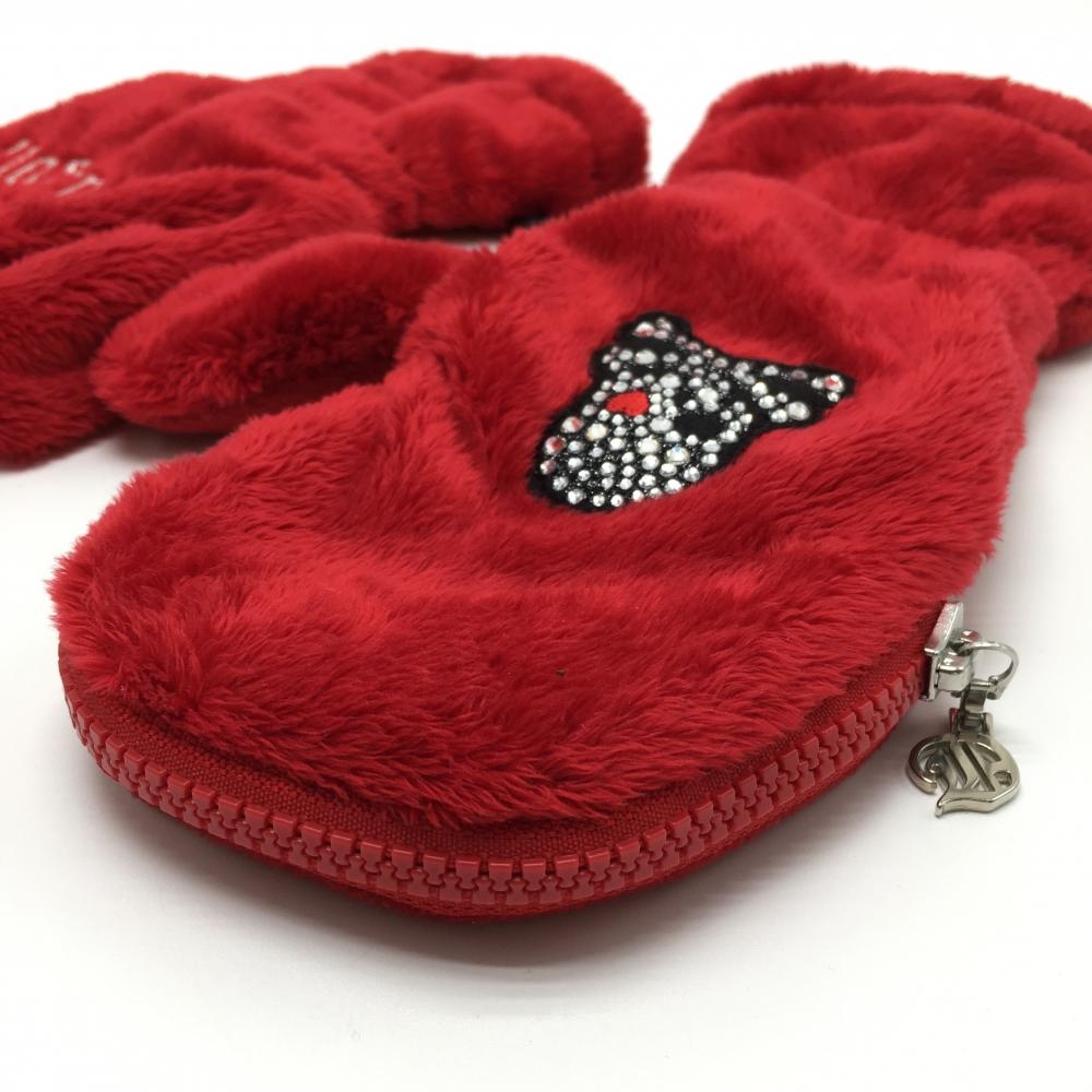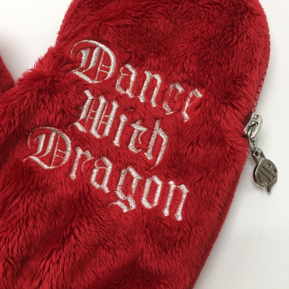 【超美品】ダンスウィズドラゴン 手袋 ボアミトン レッド ロゴ刺しゅう レディース FREE ゴルフウェア Dance With Dragon