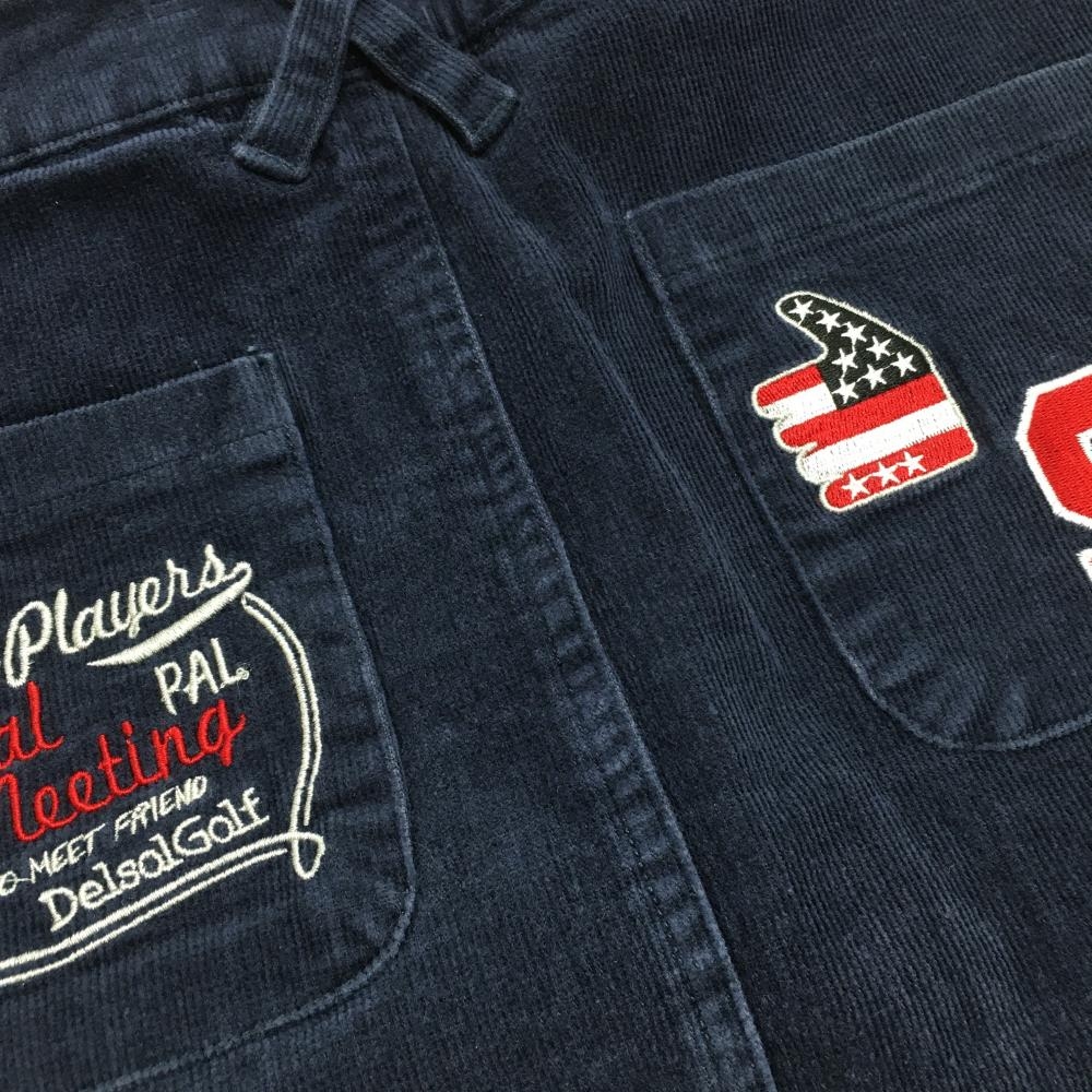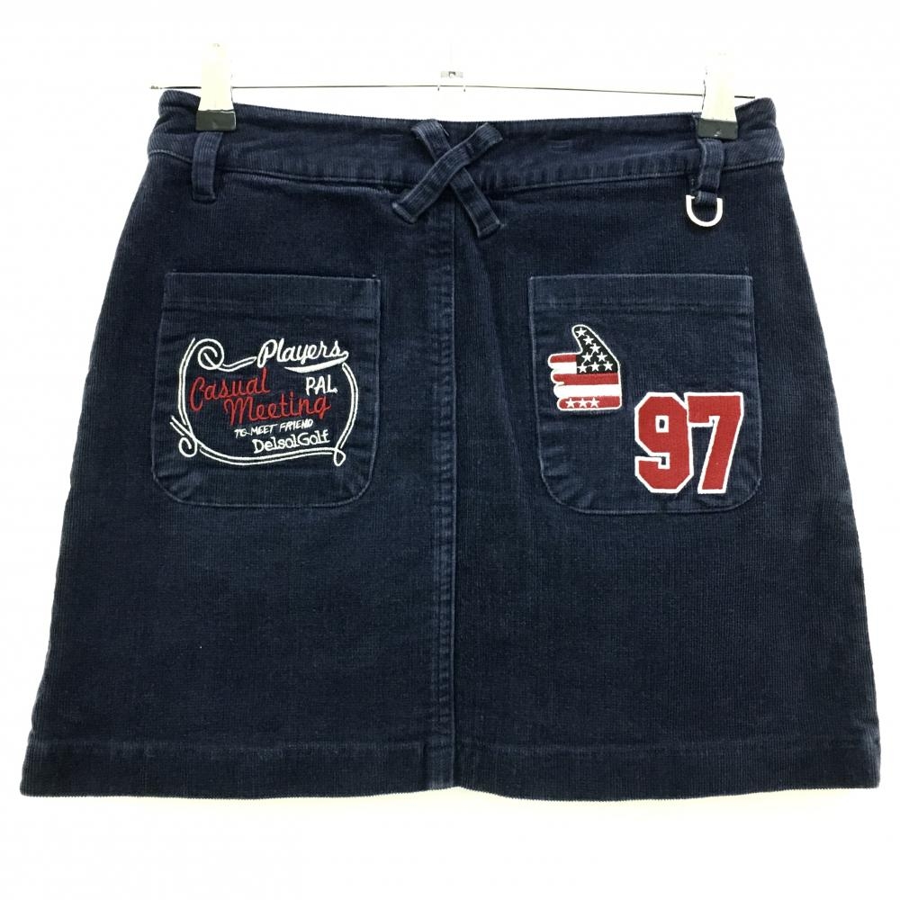 デルソル コーデュロイスカート ネイビー ヒップ刺しゅう 内側インナーパンツ ストレッチ レディース S ゴルフウェア DELSOL
