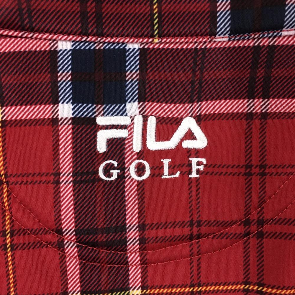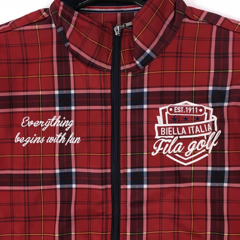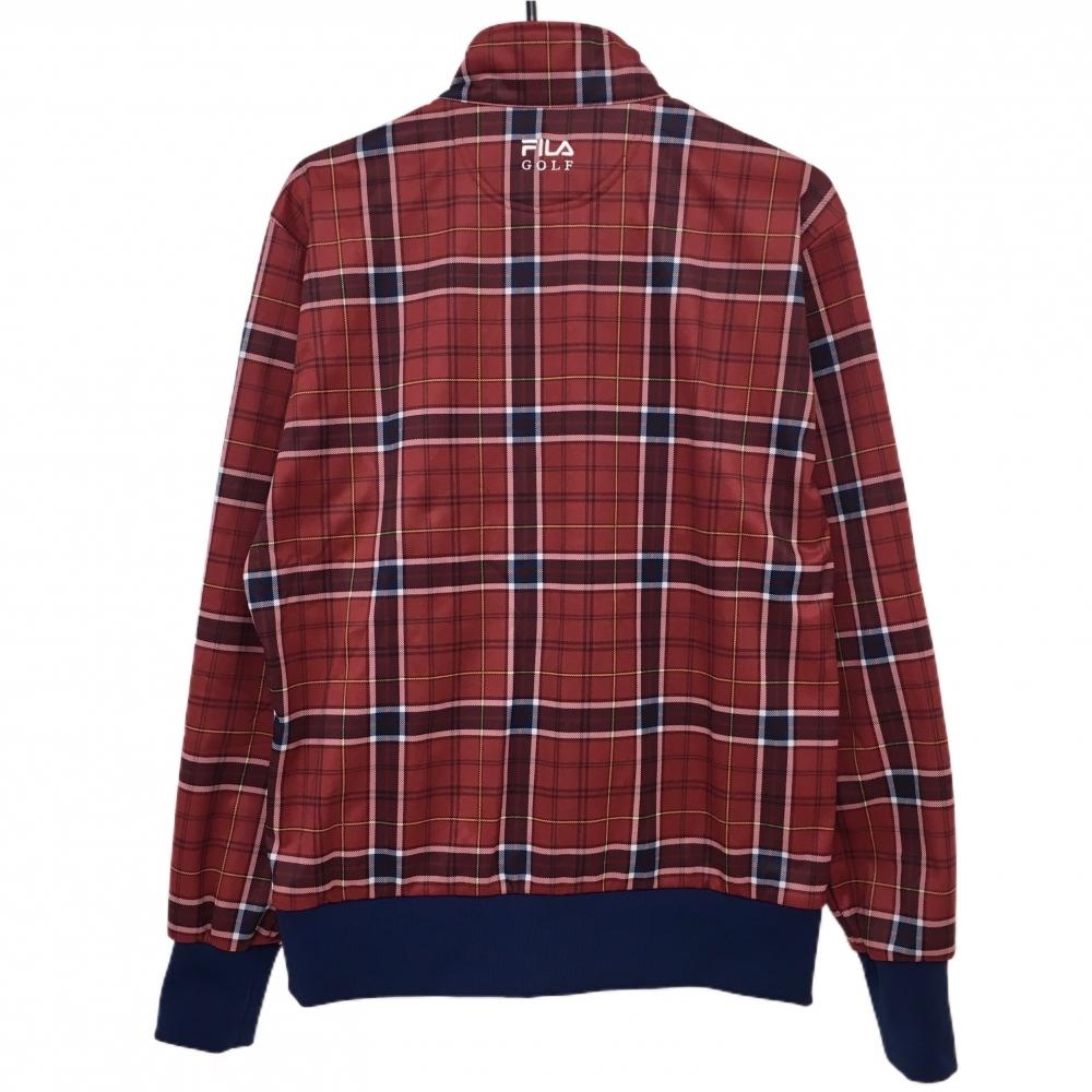 【超美品】フィラゴルフ ジャケットブルゾン レッド×ネイビー チェック ロゴ刺しゅう 内側フリース メンズ L ゴルフウェア FILA GOLF