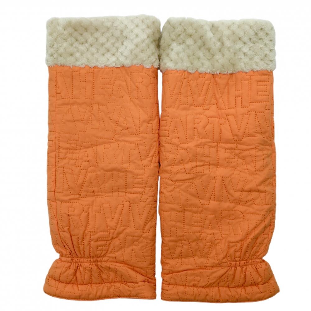 【美品】ビバハート 中綿レッグウォーマー オレンジ×ベージュ ボア ドローコード レディース 40 ゴルフウェア VIVA HEART