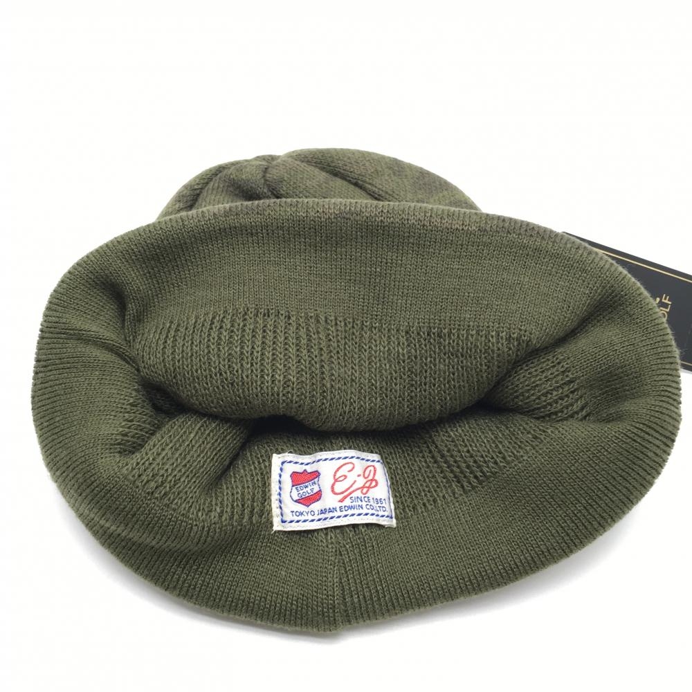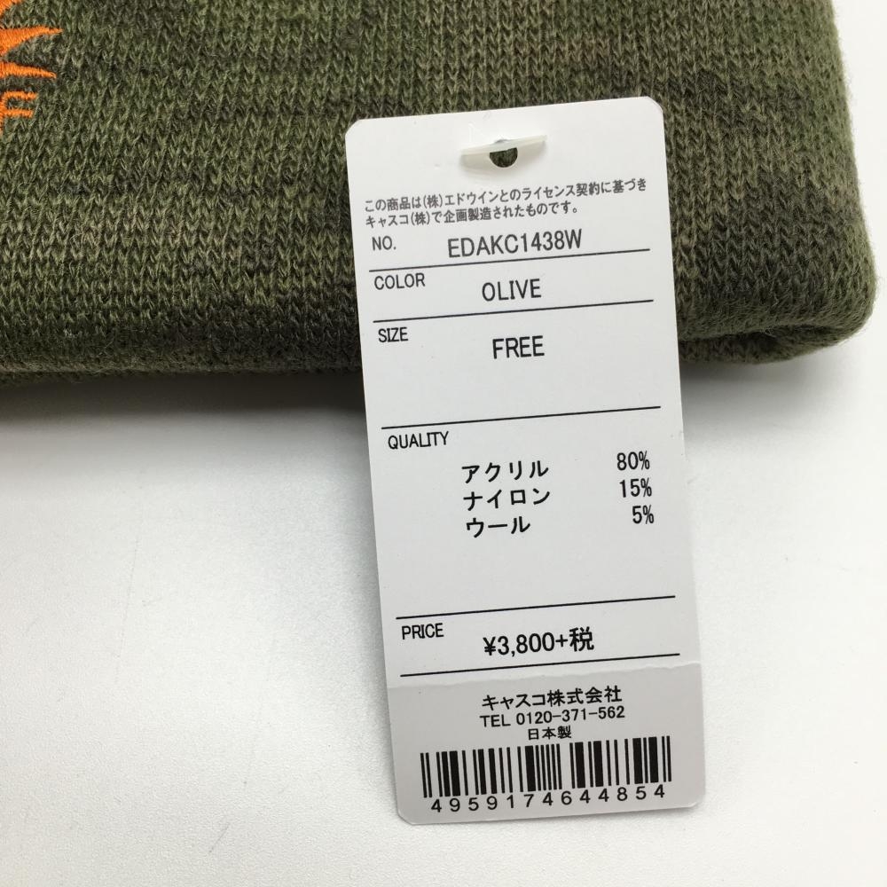 【新品】エドウィンゴルフ ニット帽 カーキ ロゴオレンジ FREE ゴルフウェア EDWIN GOLF