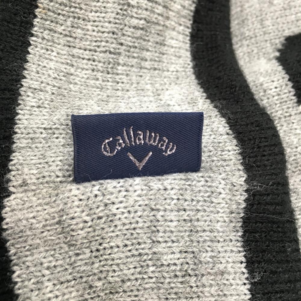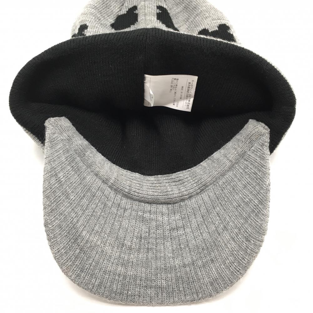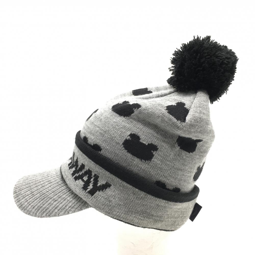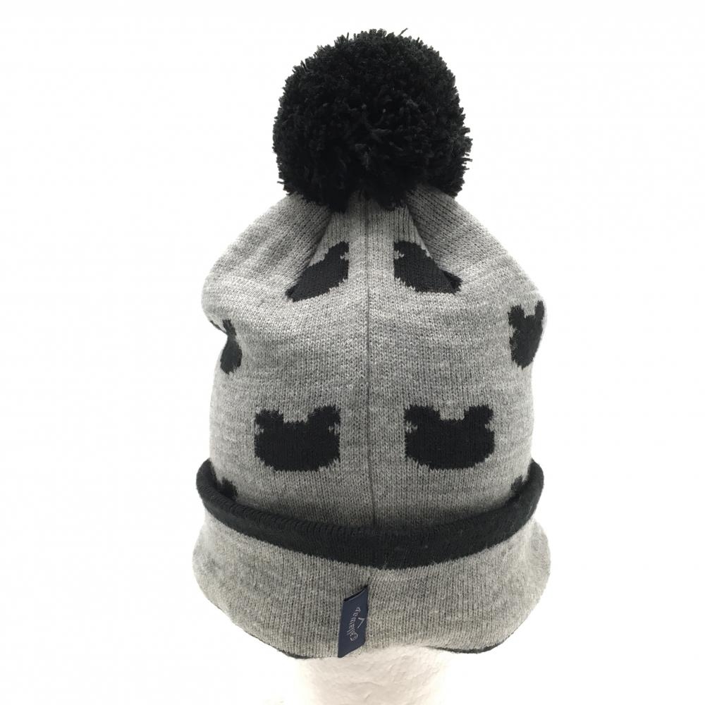 【超美品】キャロウェイ つば付きニット帽 グレー×黒 クマ総柄 ボンボン アクリル100% FR ゴルフウェア Callaway