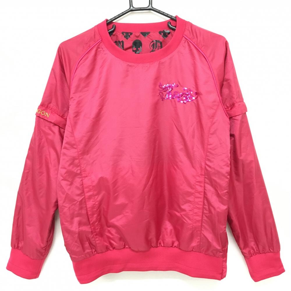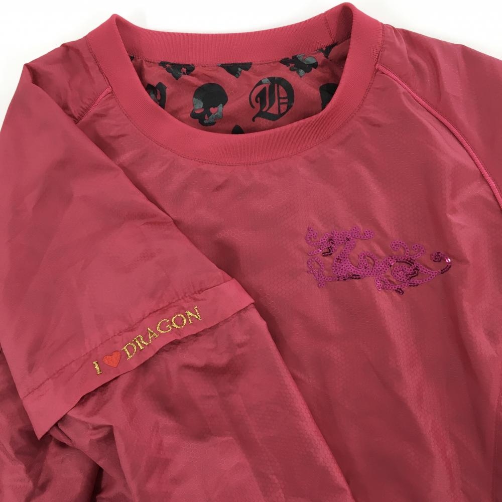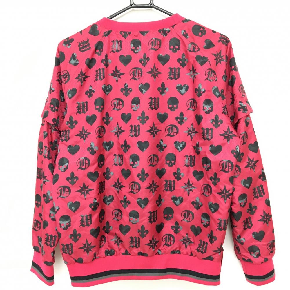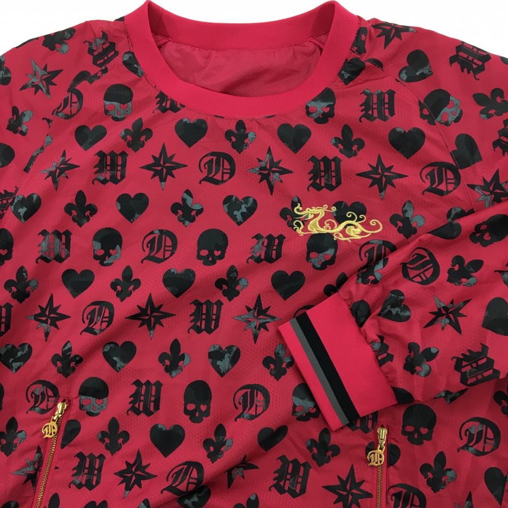 【超美品】ダンスウィズドラゴン 4WAYリバーシブルスニード レッド×黒 総柄 スカル レディース 3(L) ゴルフウェア Dance With Dragon