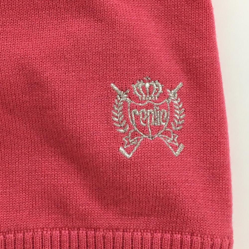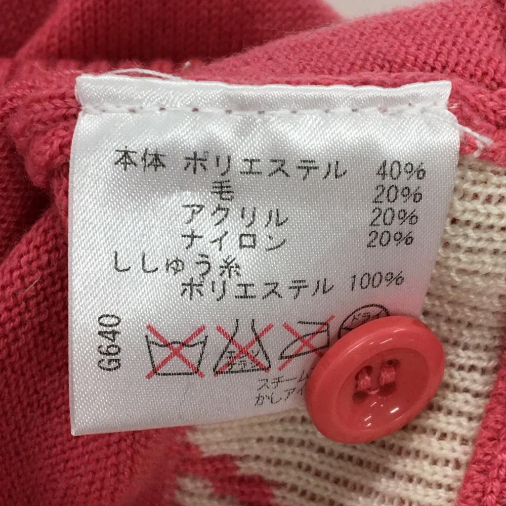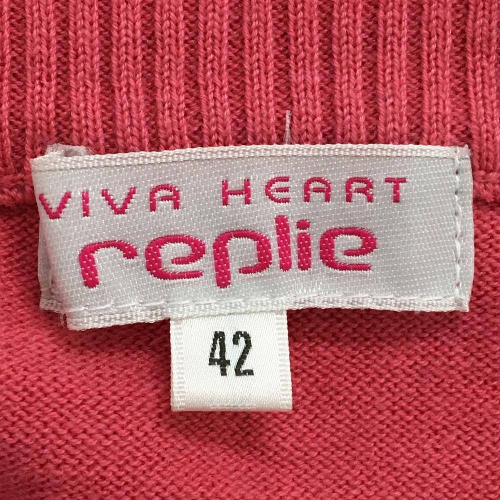 【美品】ビバハート replie ニットカーディガン ピンク×オレンジ 前面一部アーガイル柄 レディース 42(L) ゴルフウェア VIVA HEART