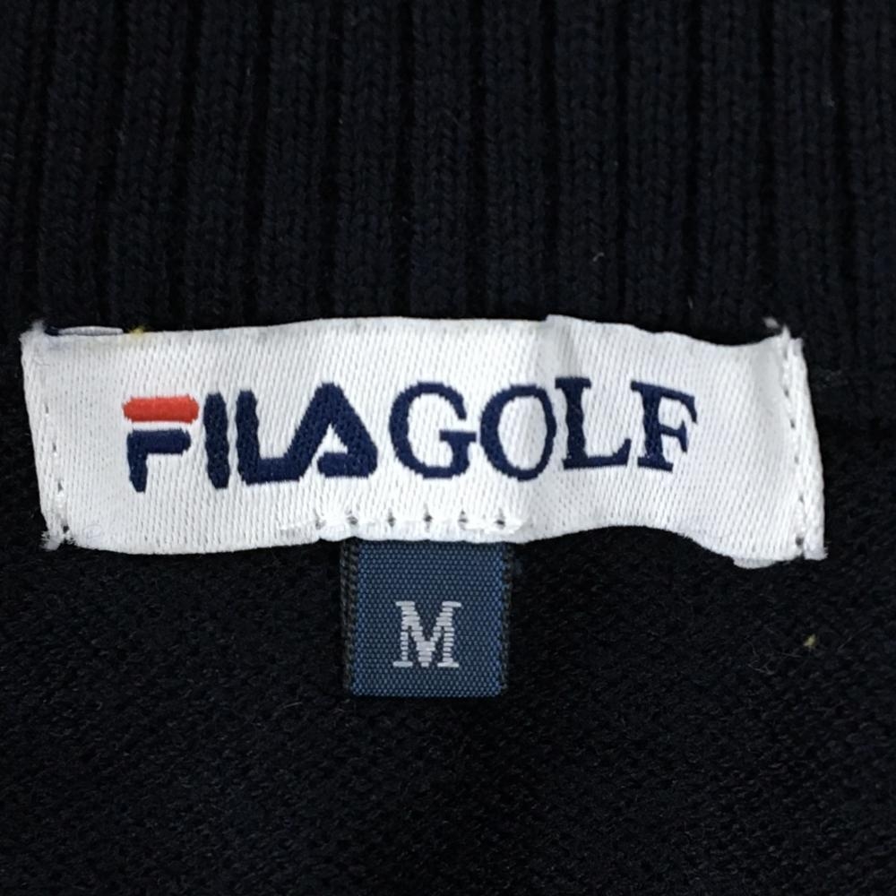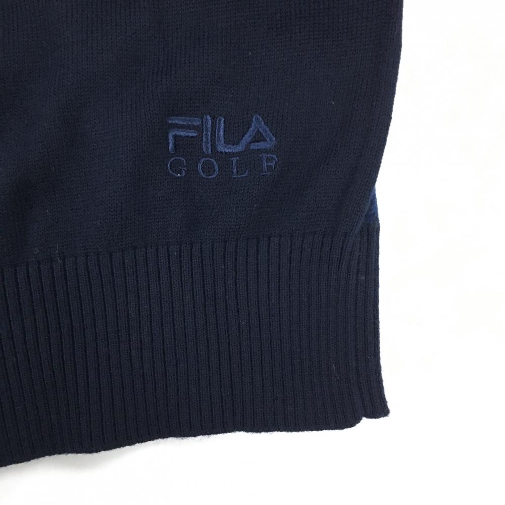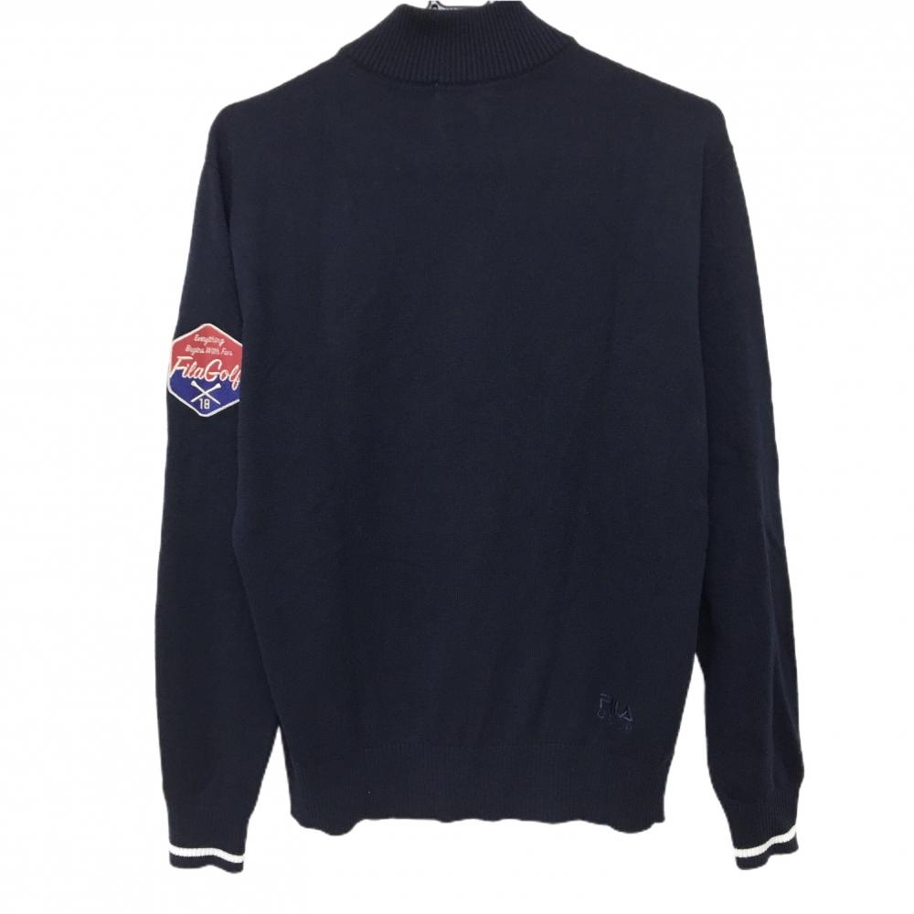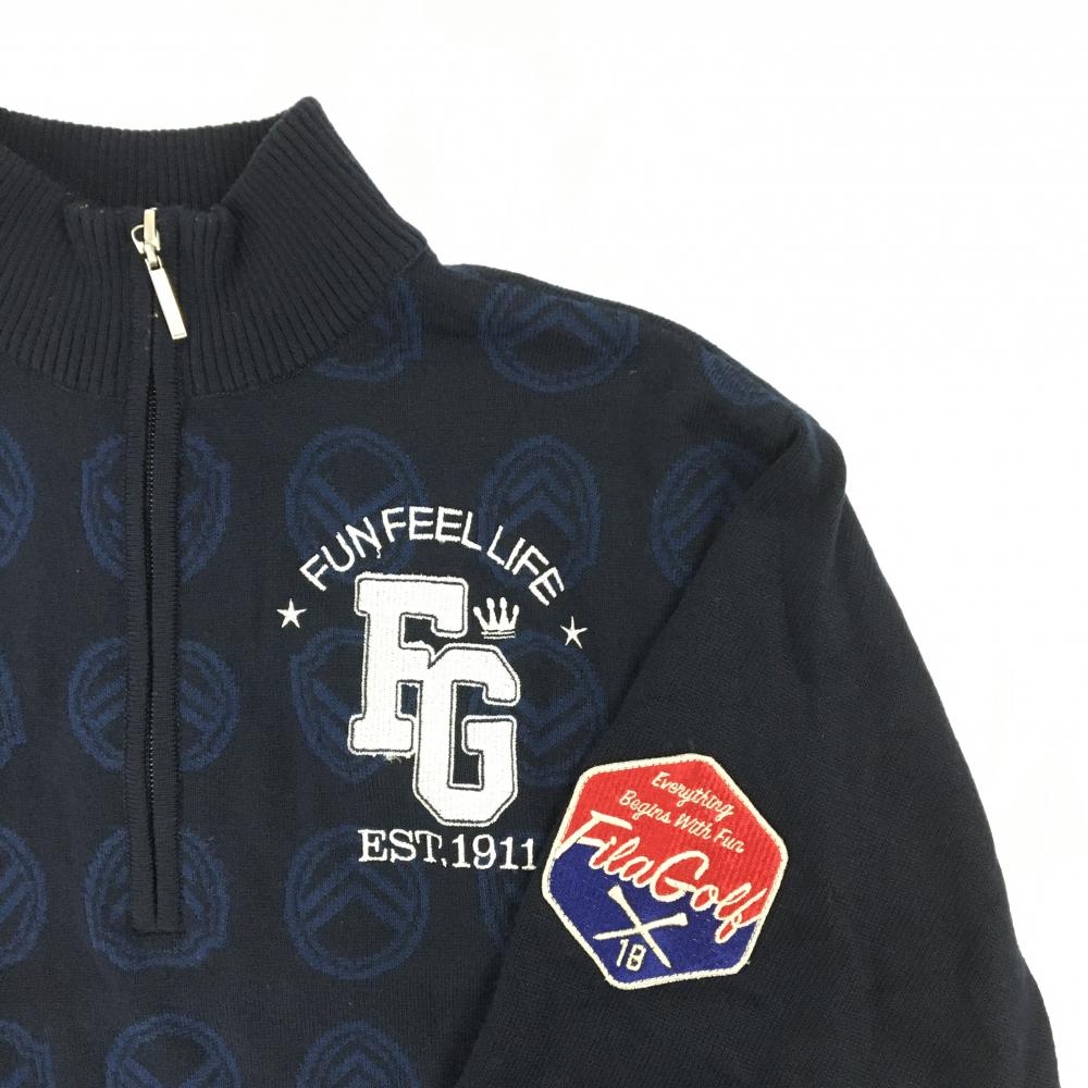 フィラゴルフ ハイネックセーター ネイビー 身頃柄 ハーフジップ ウール混 メンズ M ゴルフウェア FILA GOLF