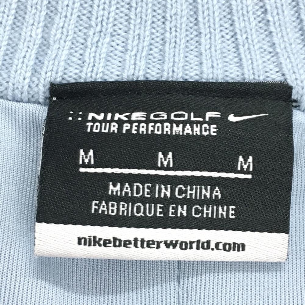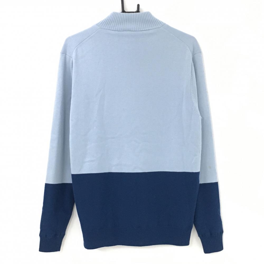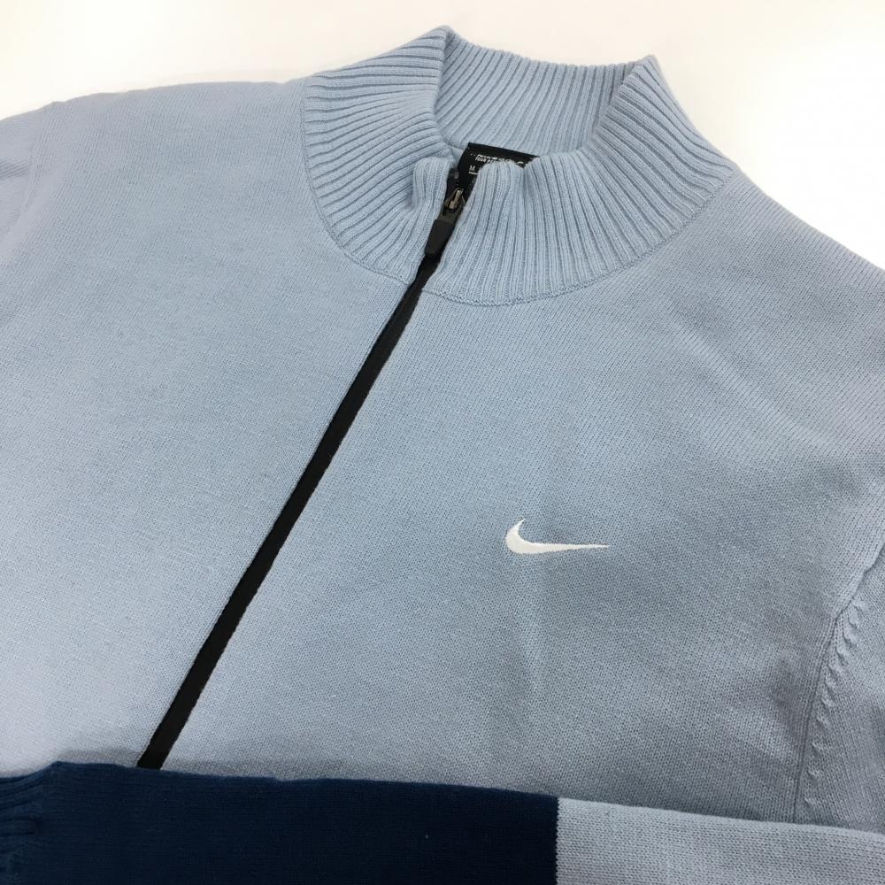 ナイキゴルフ ニットブルゾン ライトブルー×ネイビー ロゴ刺しゅう フルジップ ウール混 メンズ M ゴルフウェア NIKE