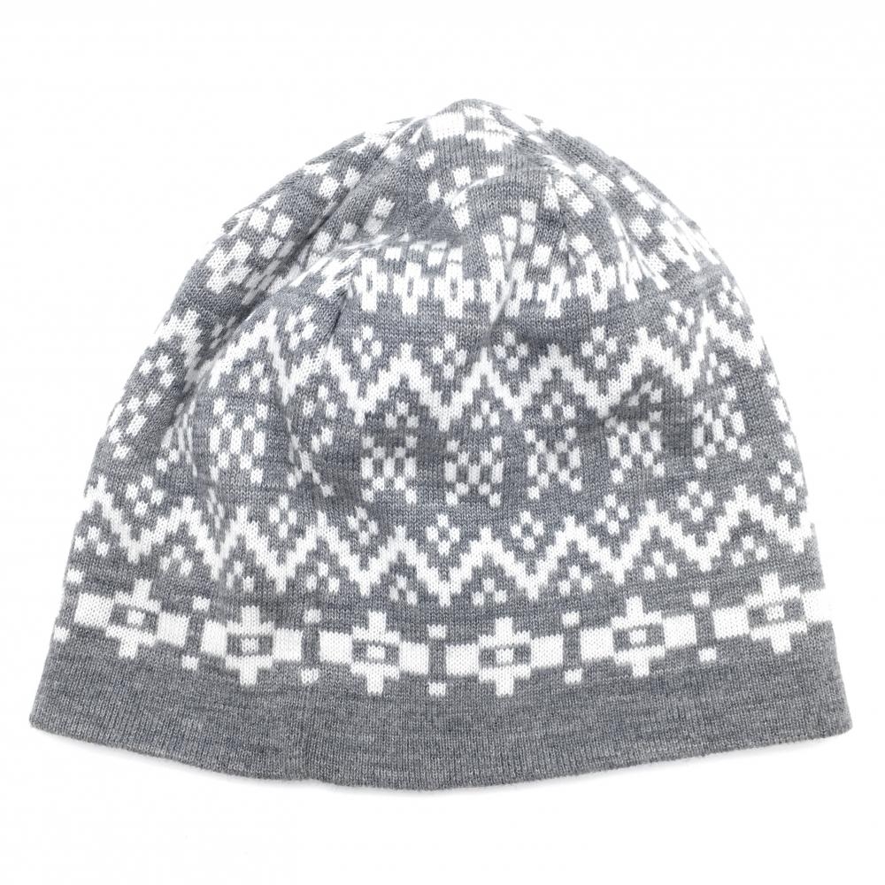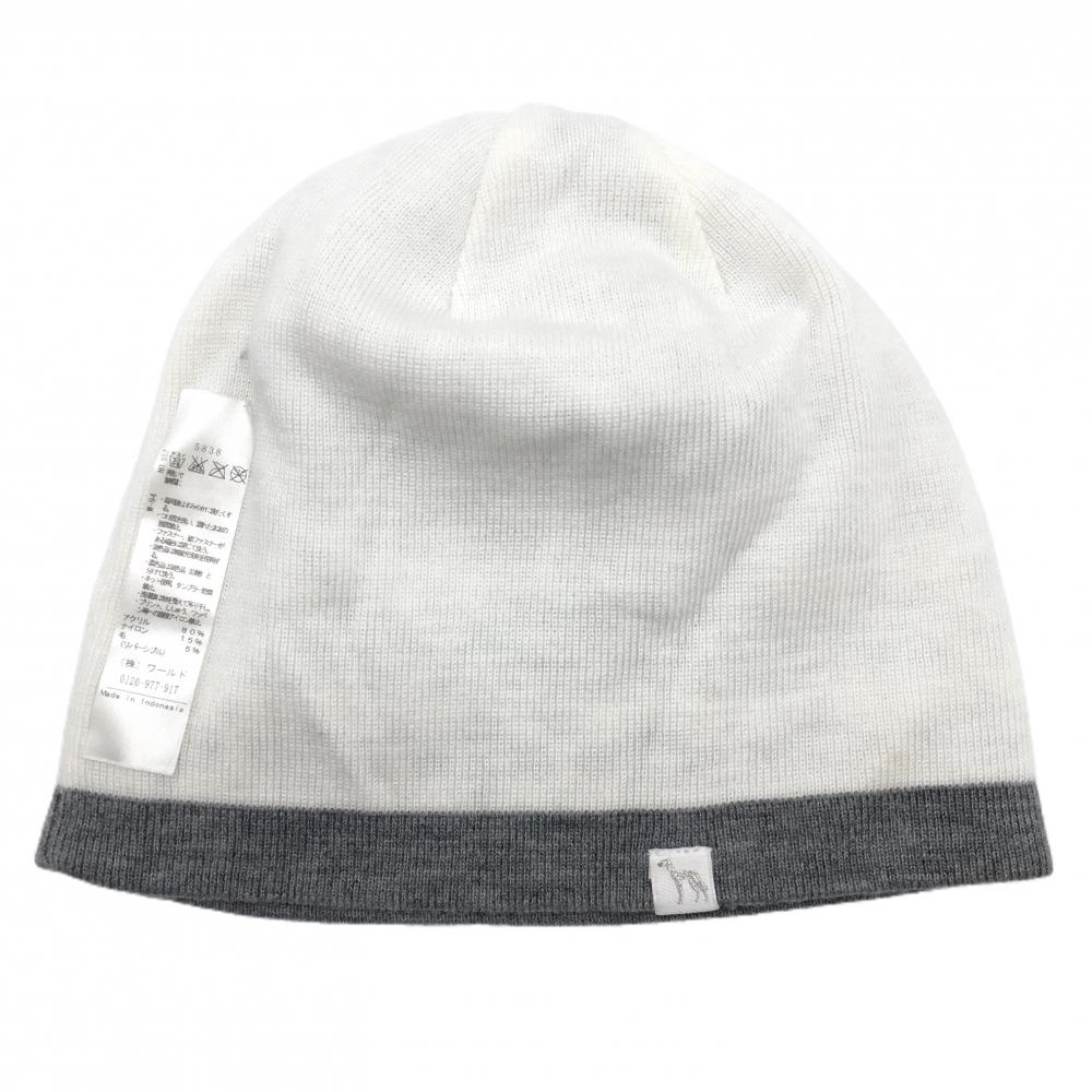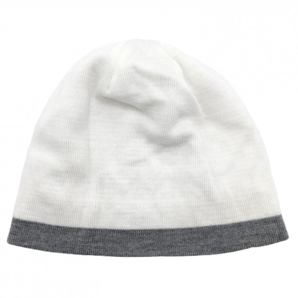 【美品】アダバット リバーシブルニット帽 グレー×白 総柄 ウール混 ゴルフウェア adabat