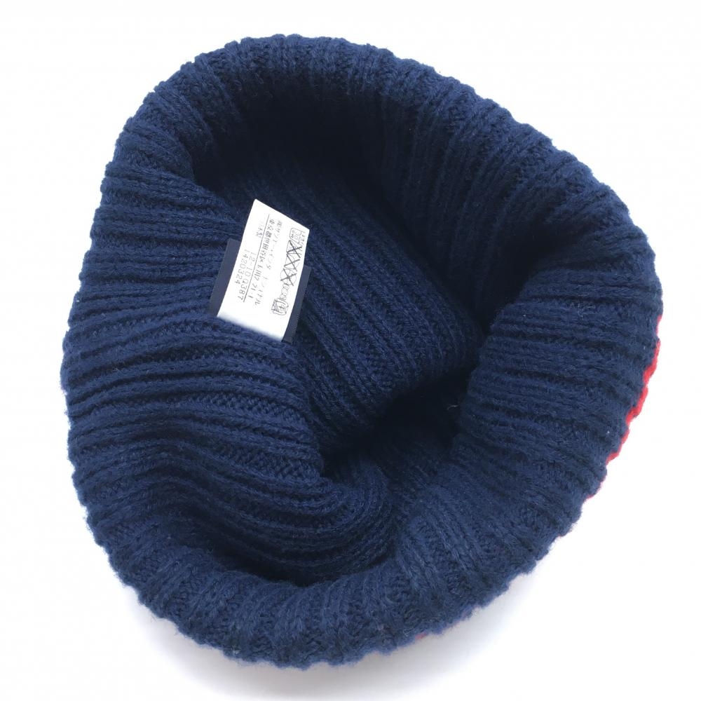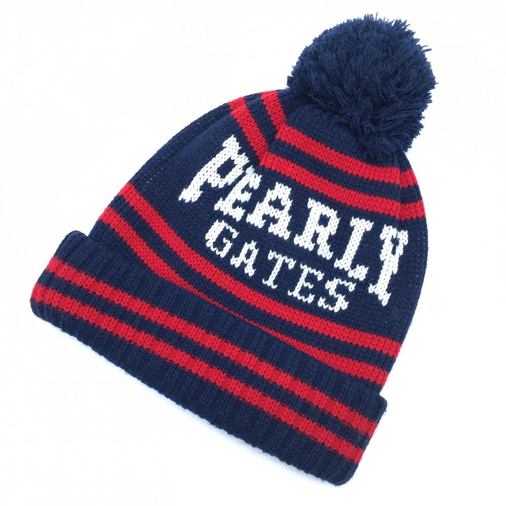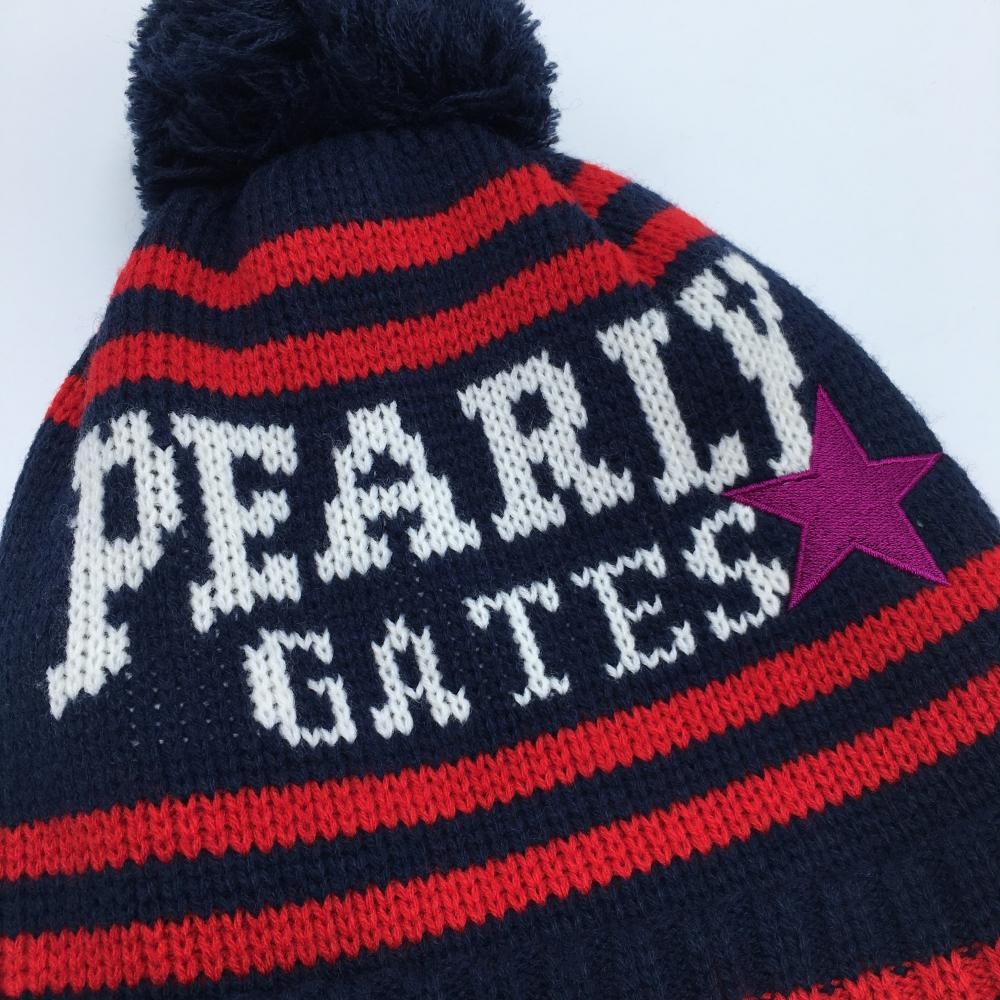 【超美品】パーリーゲイツ ニット帽 ネイビー×レッド ボンボン付き 星 FR ゴルフウェア PEARLY GATES