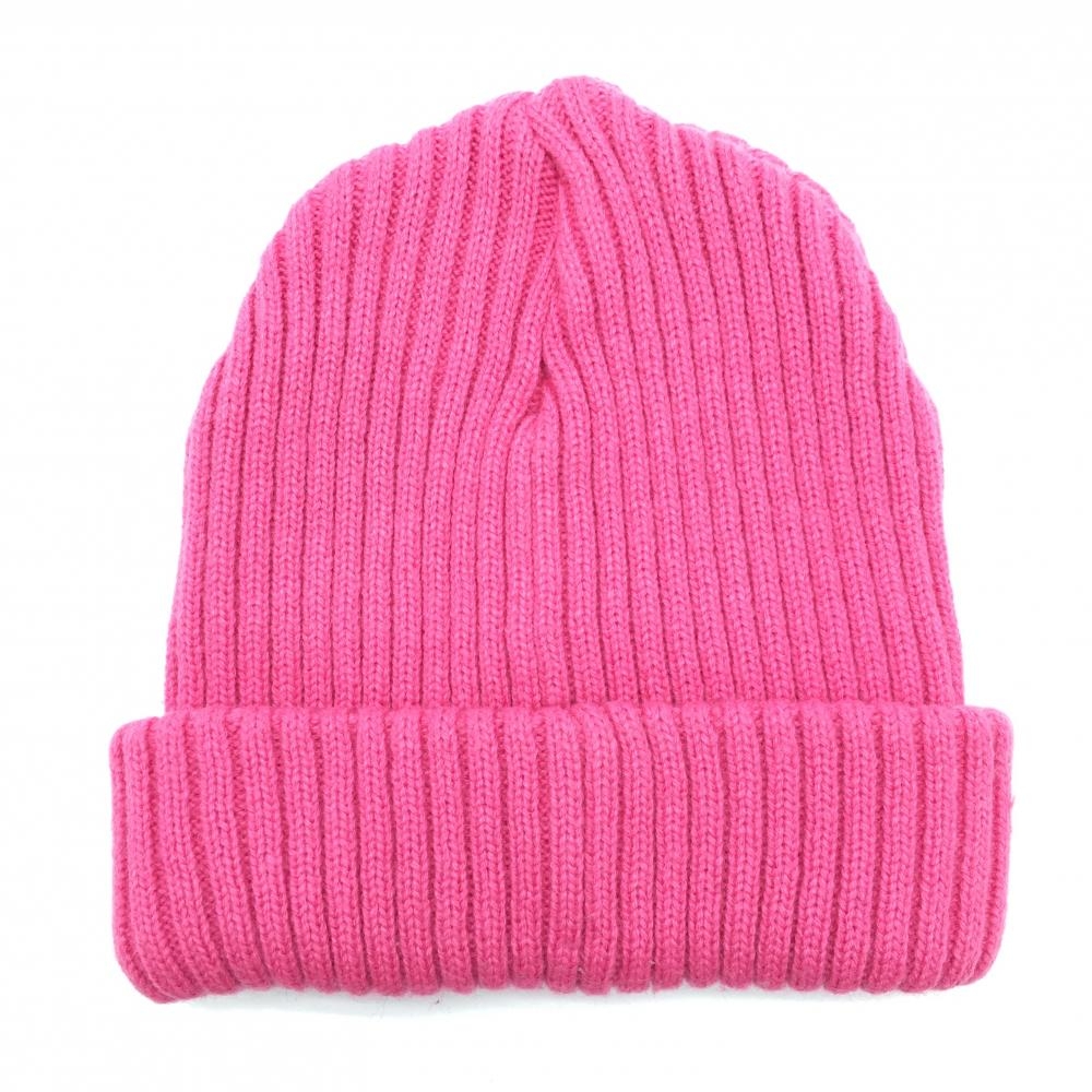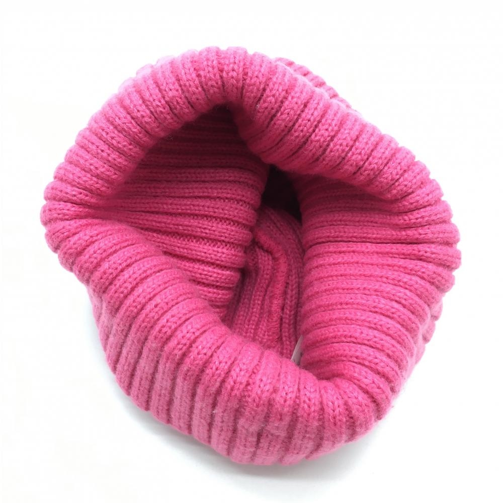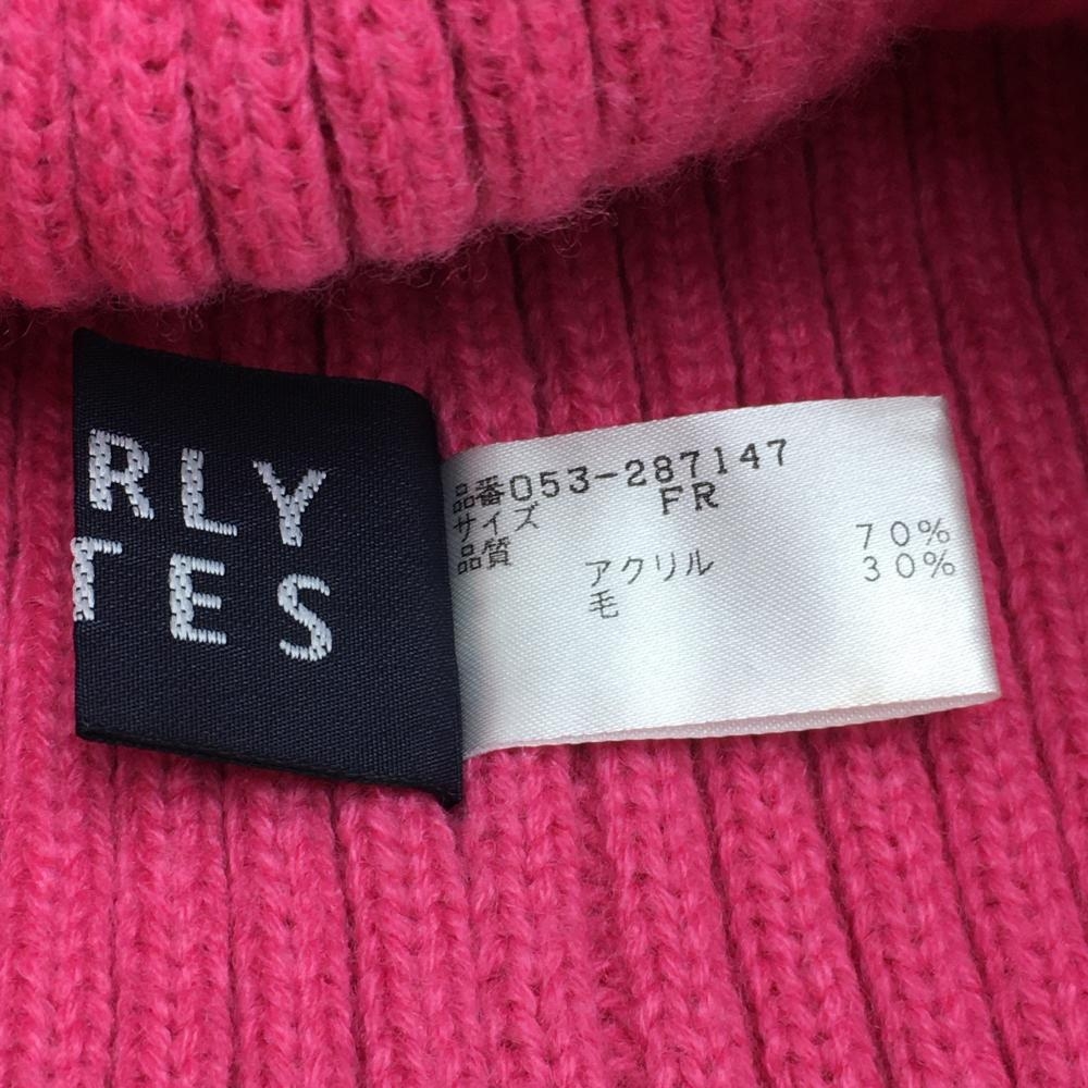 【超美品】パーリーゲイツ ニット帽 ピンク×グレー ストライプ編み ウール混 FR ゴルフウェア PEARLY GATES