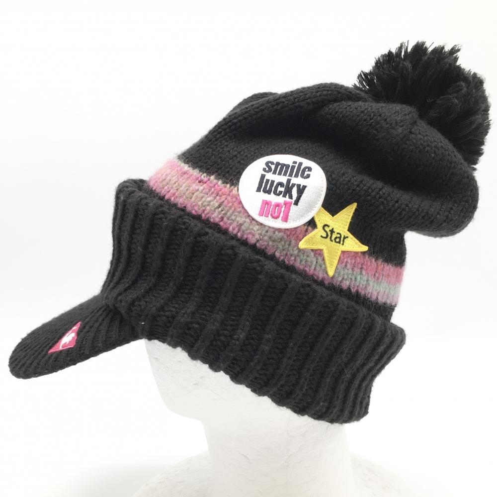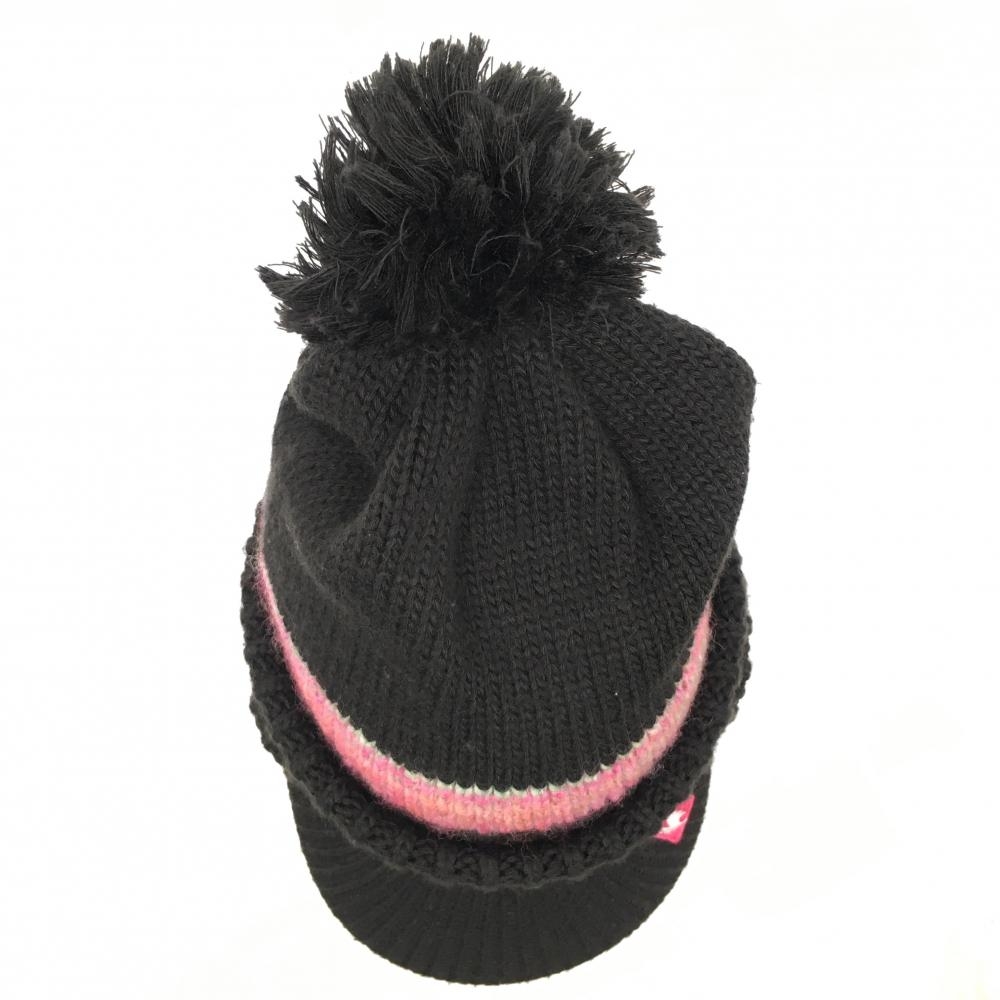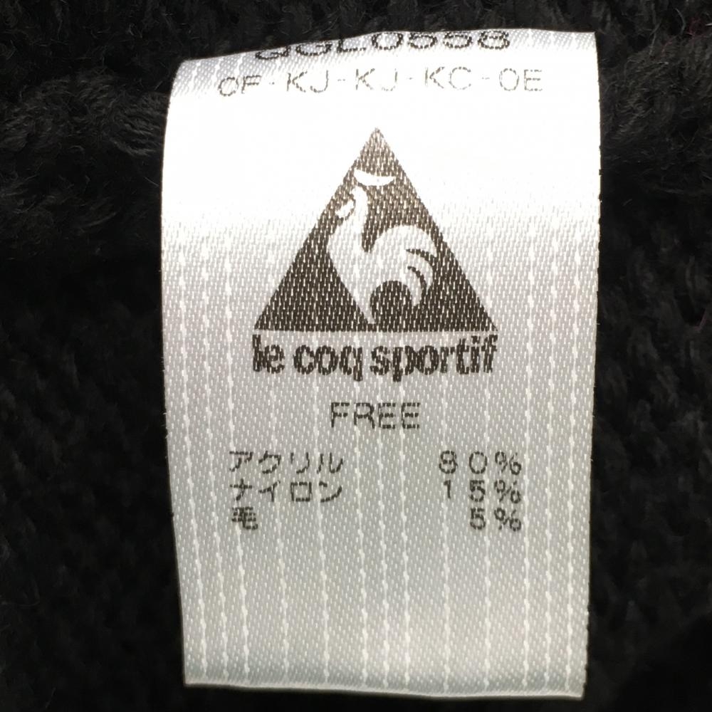 【美品】ルコック つば付きニット帽 黒×ピンク ボンボン付き ウール混 FREE ゴルフウェア le coq sportif