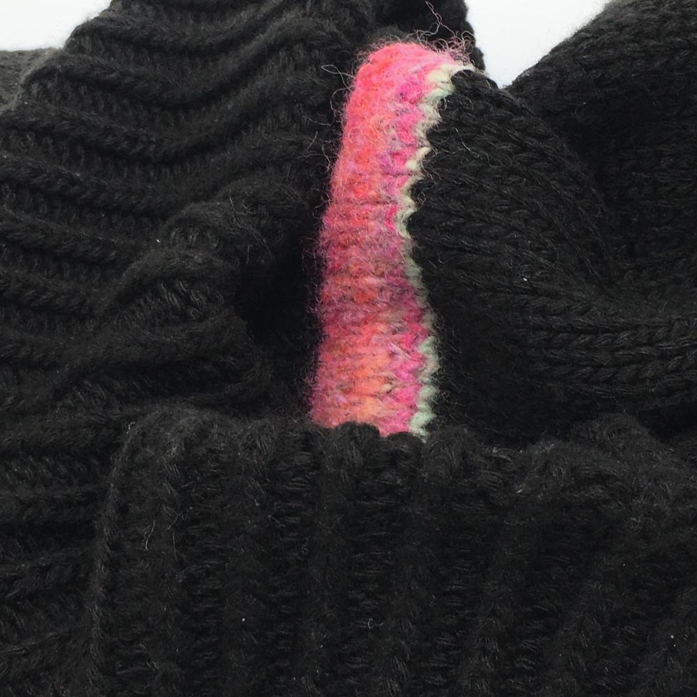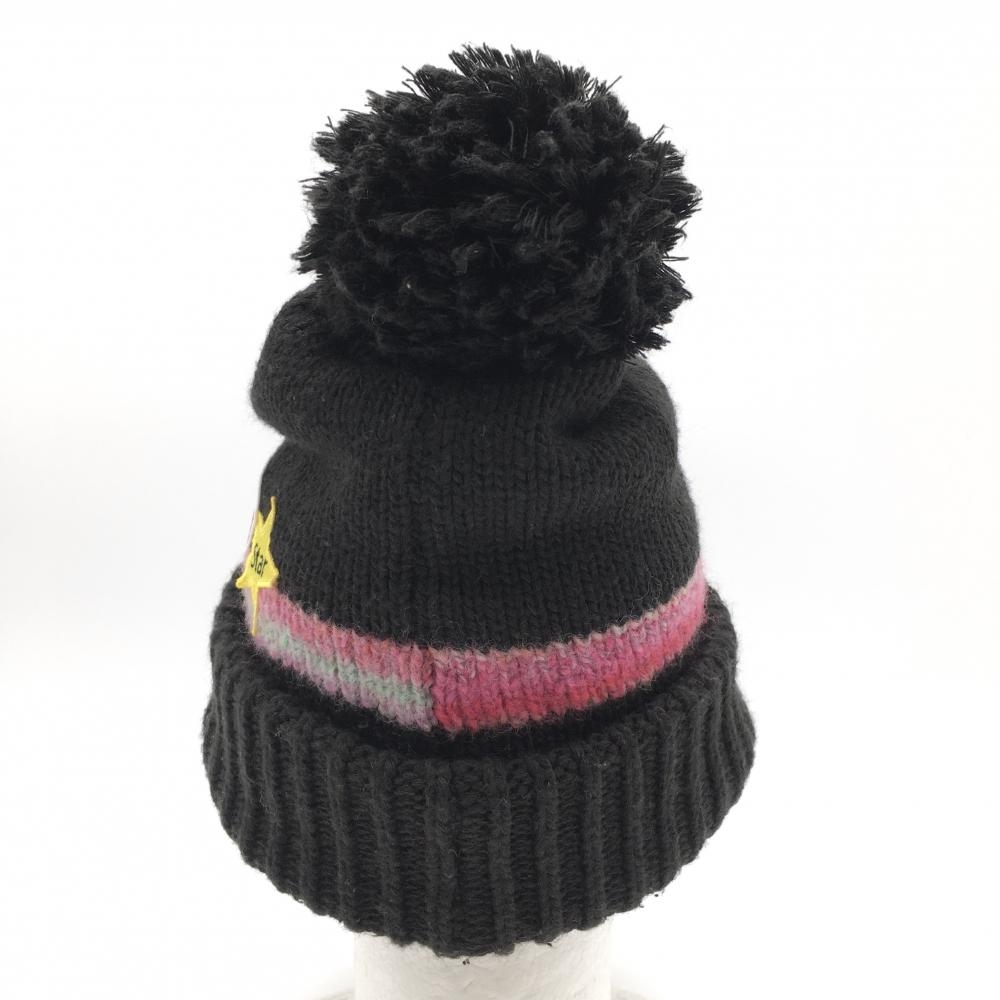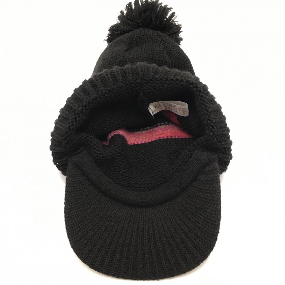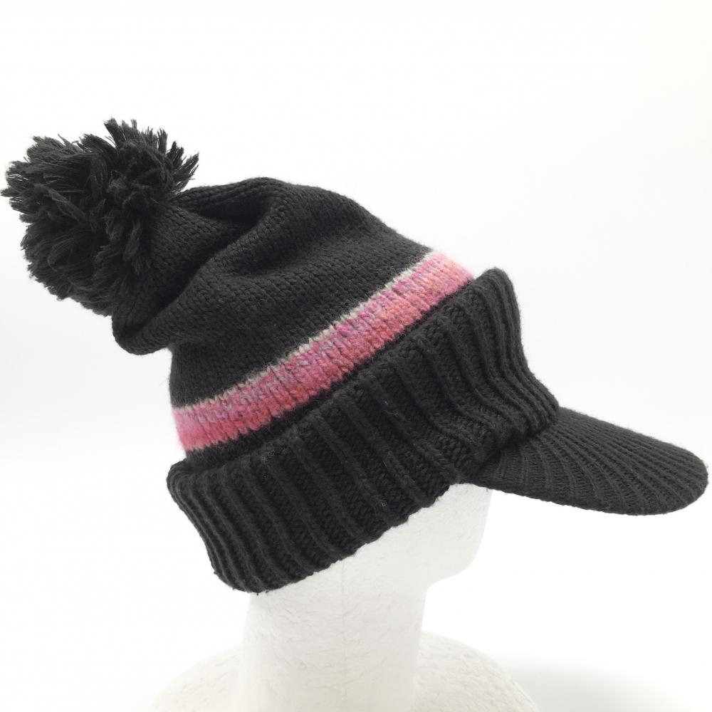 【美品】ルコック つば付きニット帽 黒×ピンク ボンボン付き ウール混 FREE ゴルフウェア le coq sportif