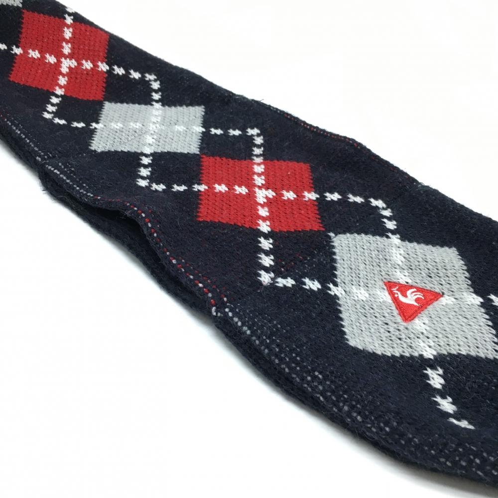 【超美品】ルコック マフラー ダークネイビー×レッド アーガイル ネックウォーマー アクリル100% ゴルフウェア le coq sportif