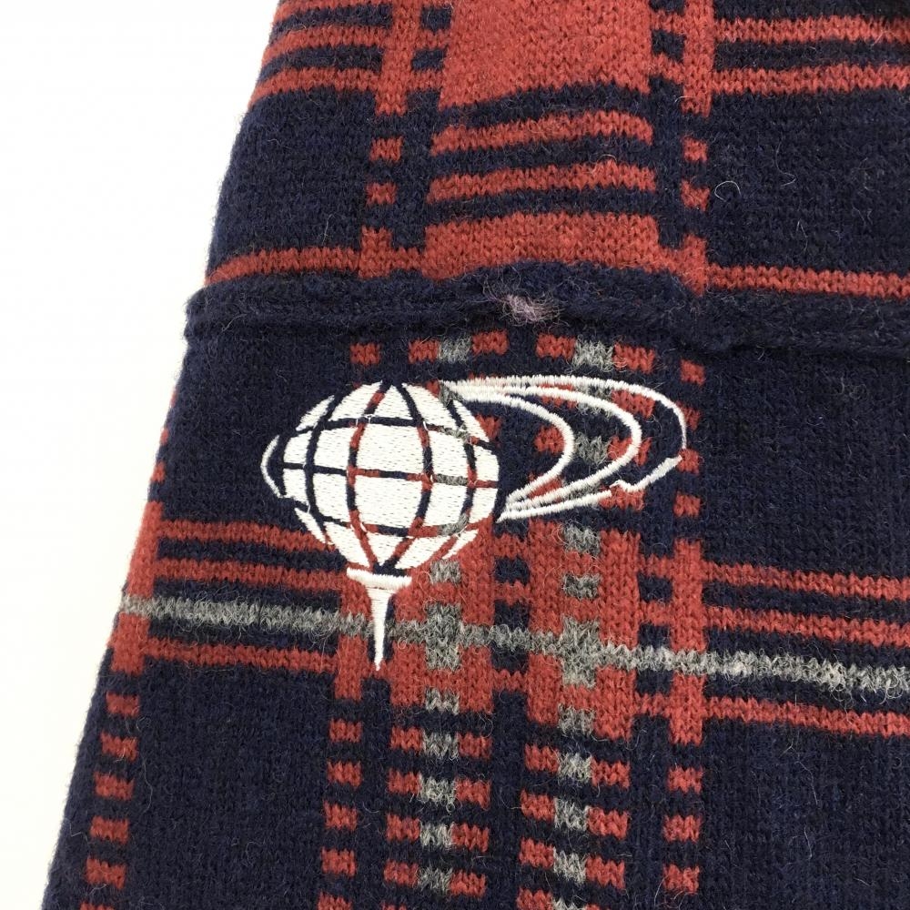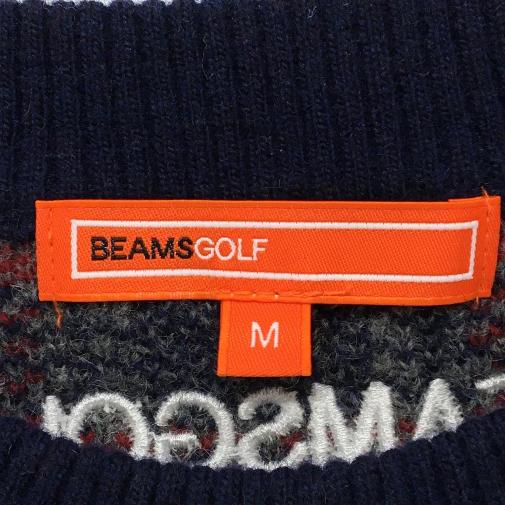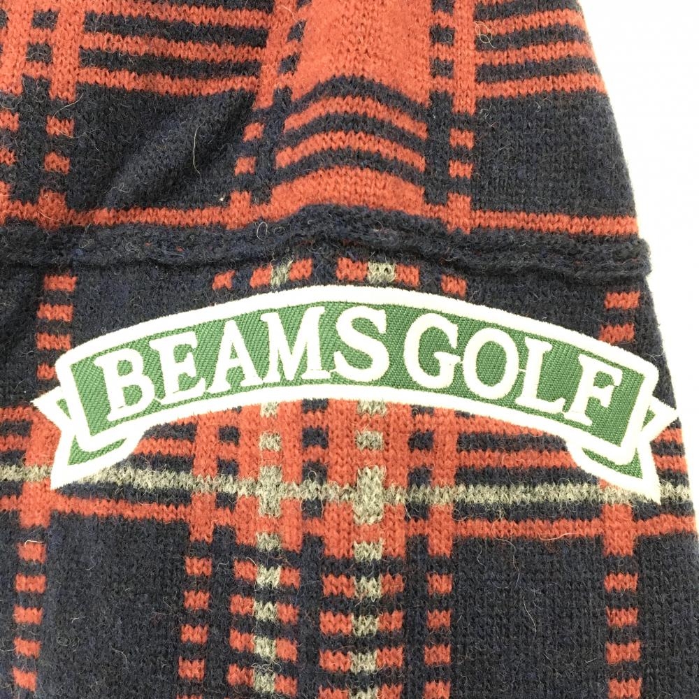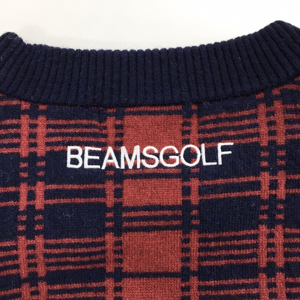 【美品】ビームスゴルフ セーター ネイビー×レッド×グリーン チェック ニット ウール混 メンズ M ゴルフウェア BEAMS GOLF