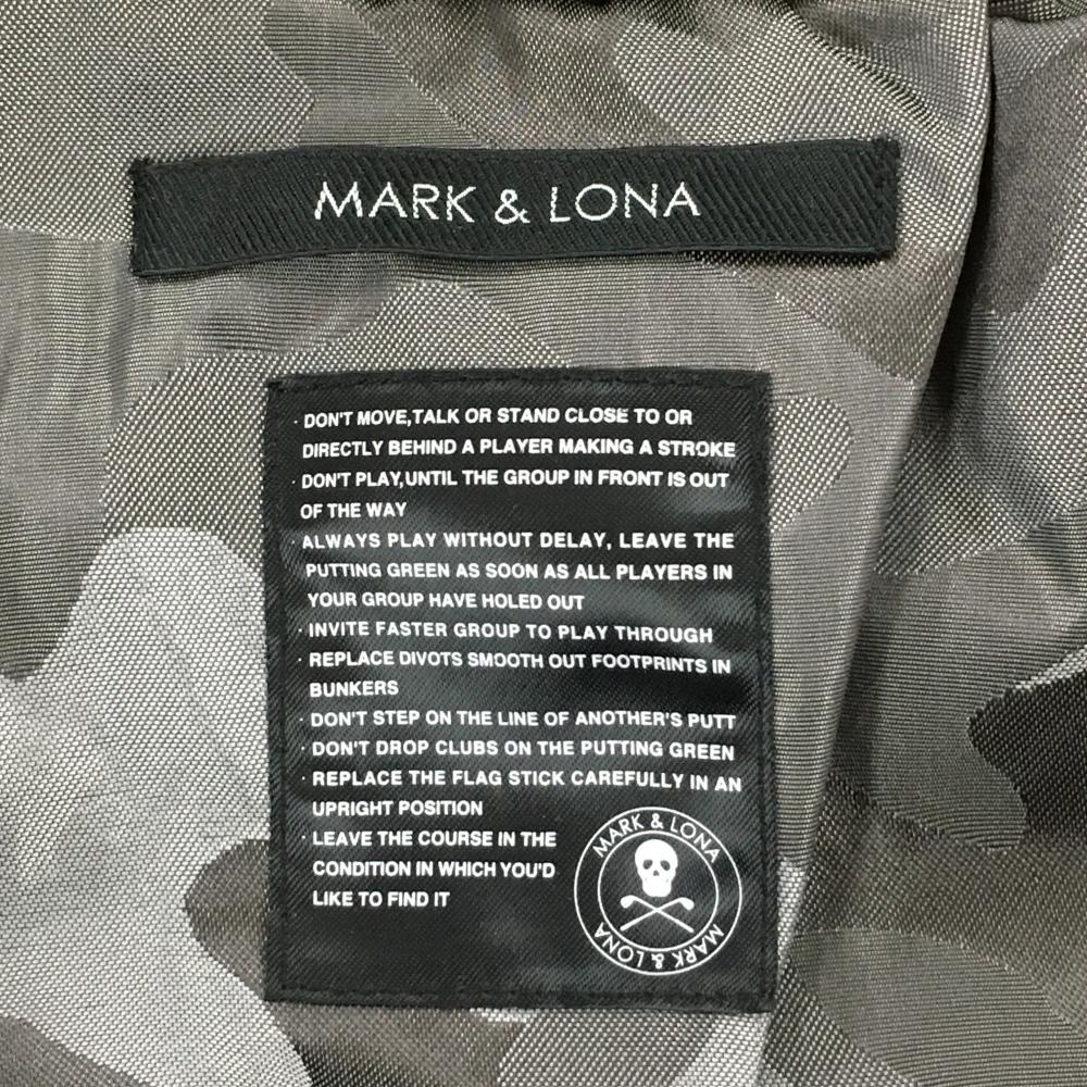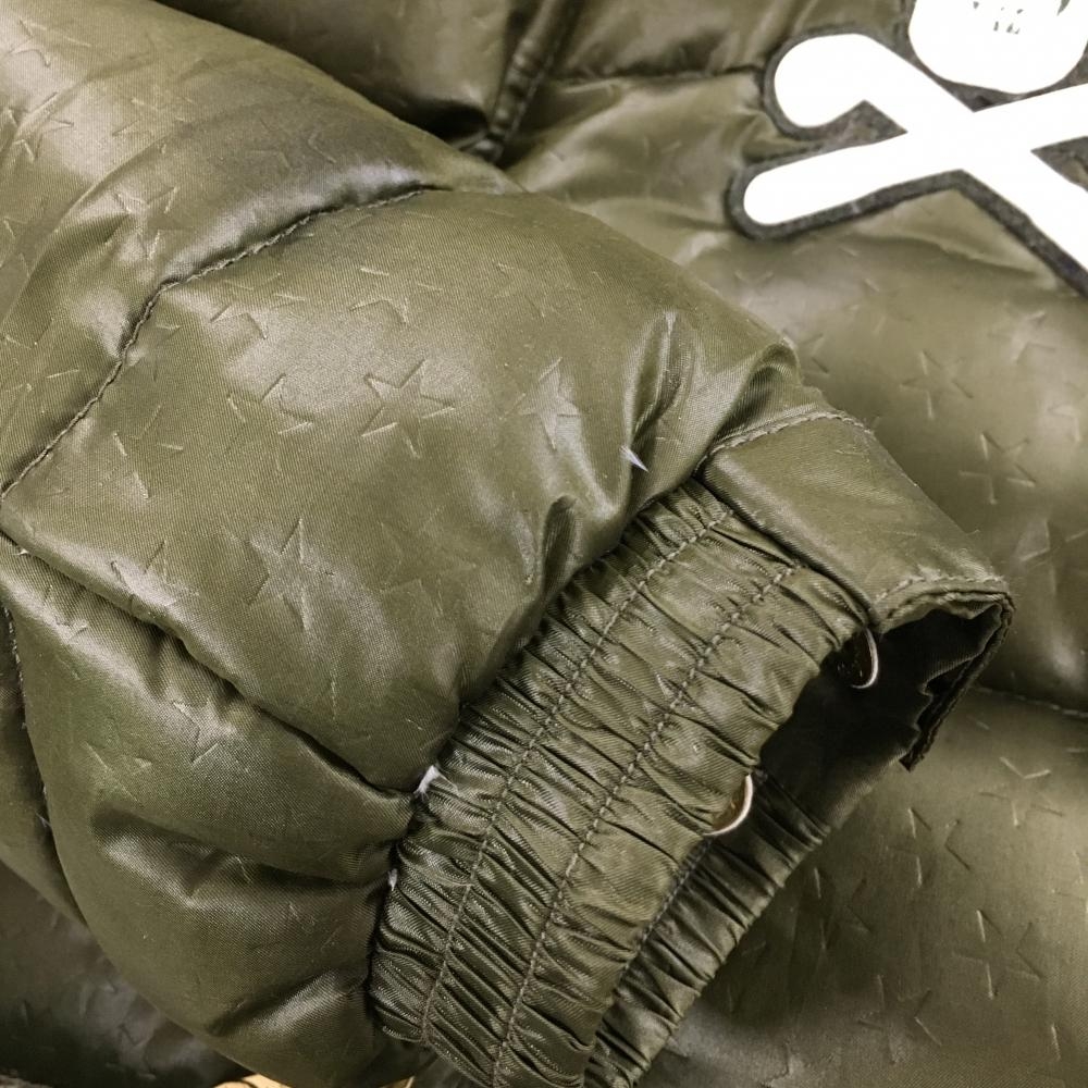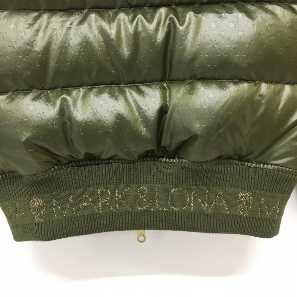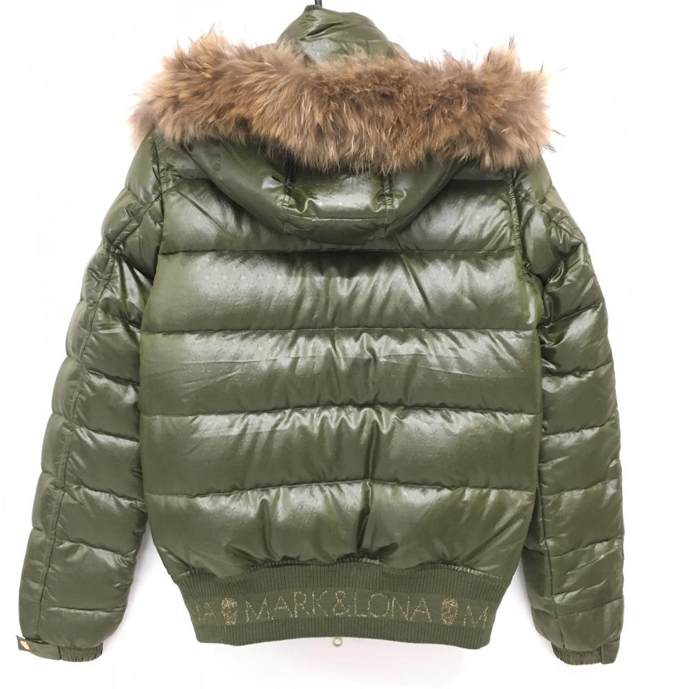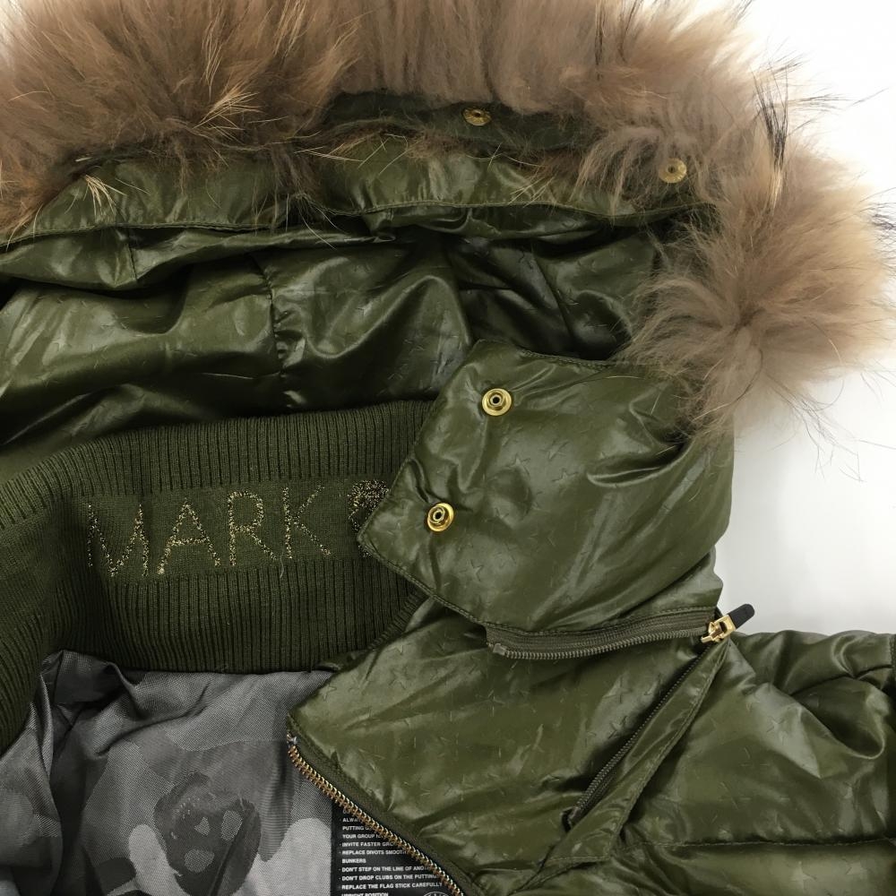 【美品】マークアンドロナ ダウンジャケット カーキ フード・ファー取り外し可 スカル 星地模様 レディース S ゴルフウェア MARK&LONA