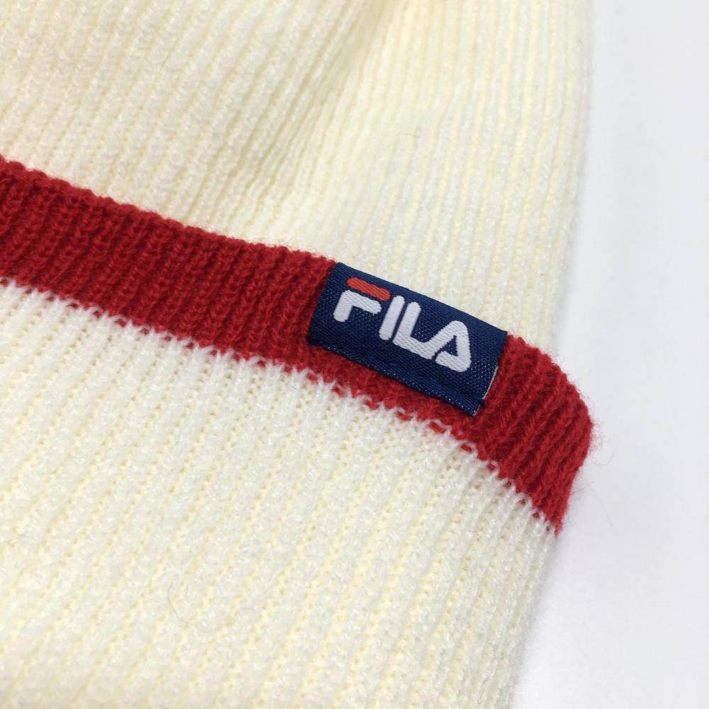 【超美品】フィラゴルフ ニット帽 アイボリー×レッド アクリル100% ゴルフウェア FILA GOLF