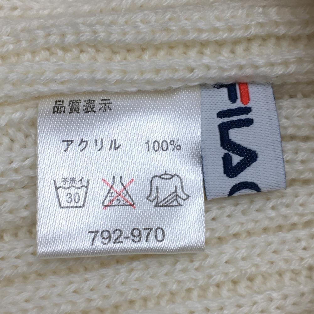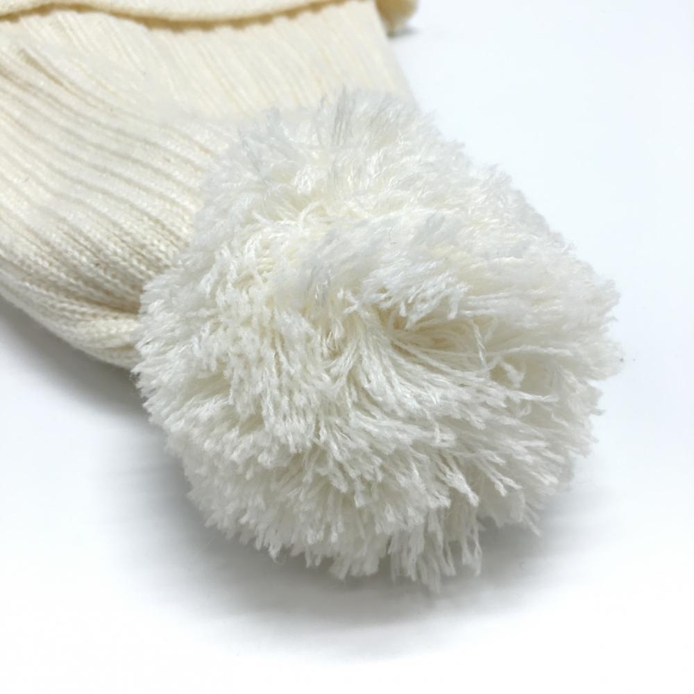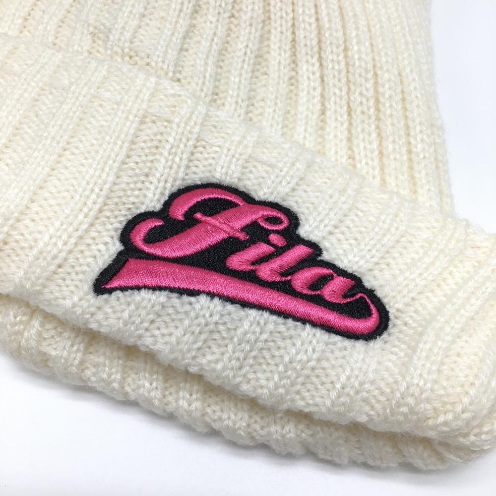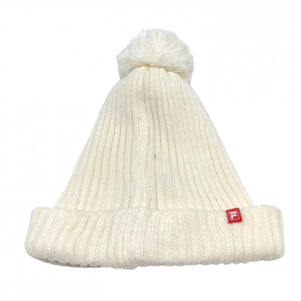 【超美品】フィラゴルフ ニット帽 アイボリー ボンボン付 アクリル100% ロゴ刺しゅう レディース ゴルフウェア FILA GOLF