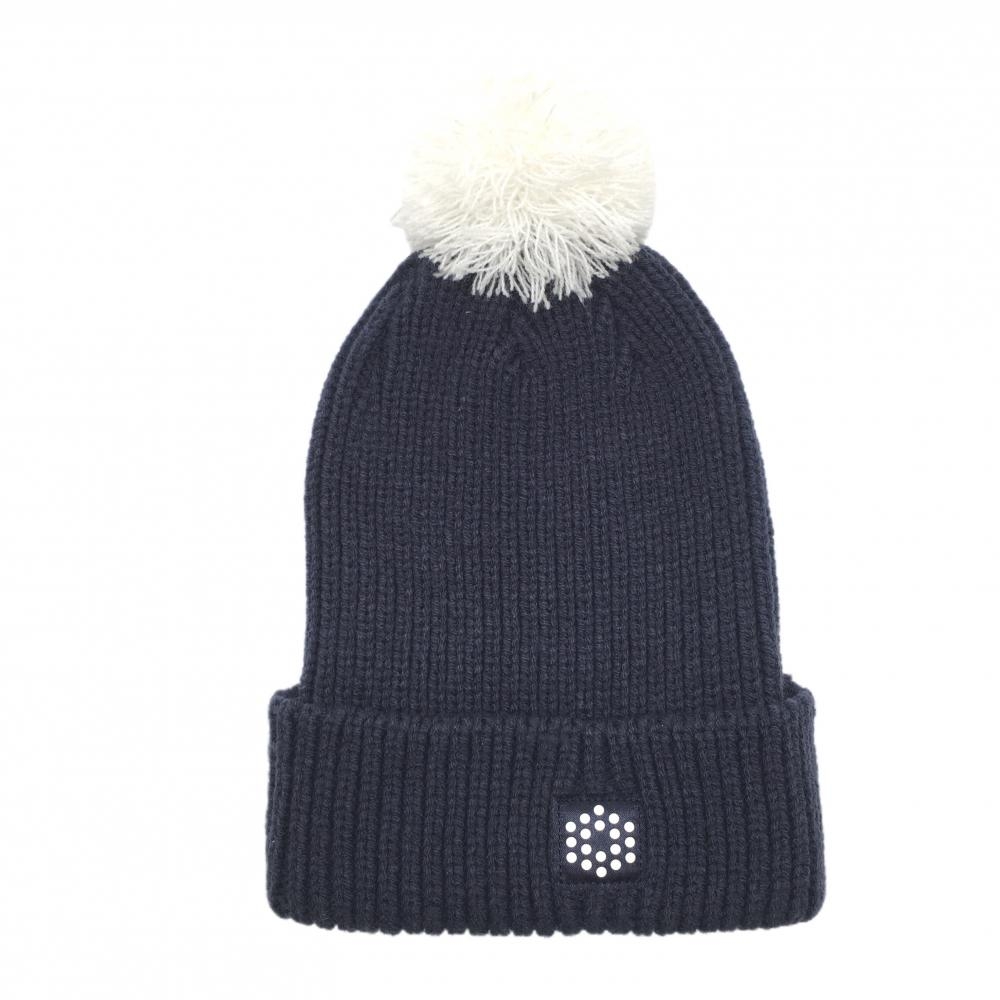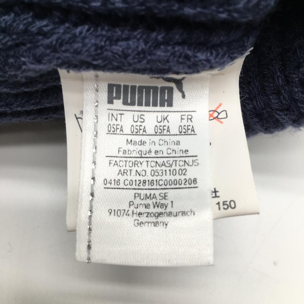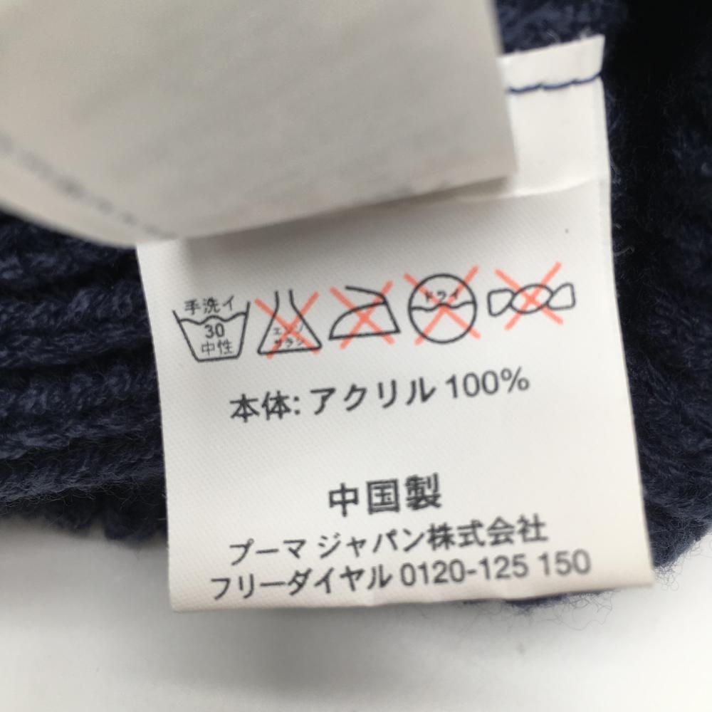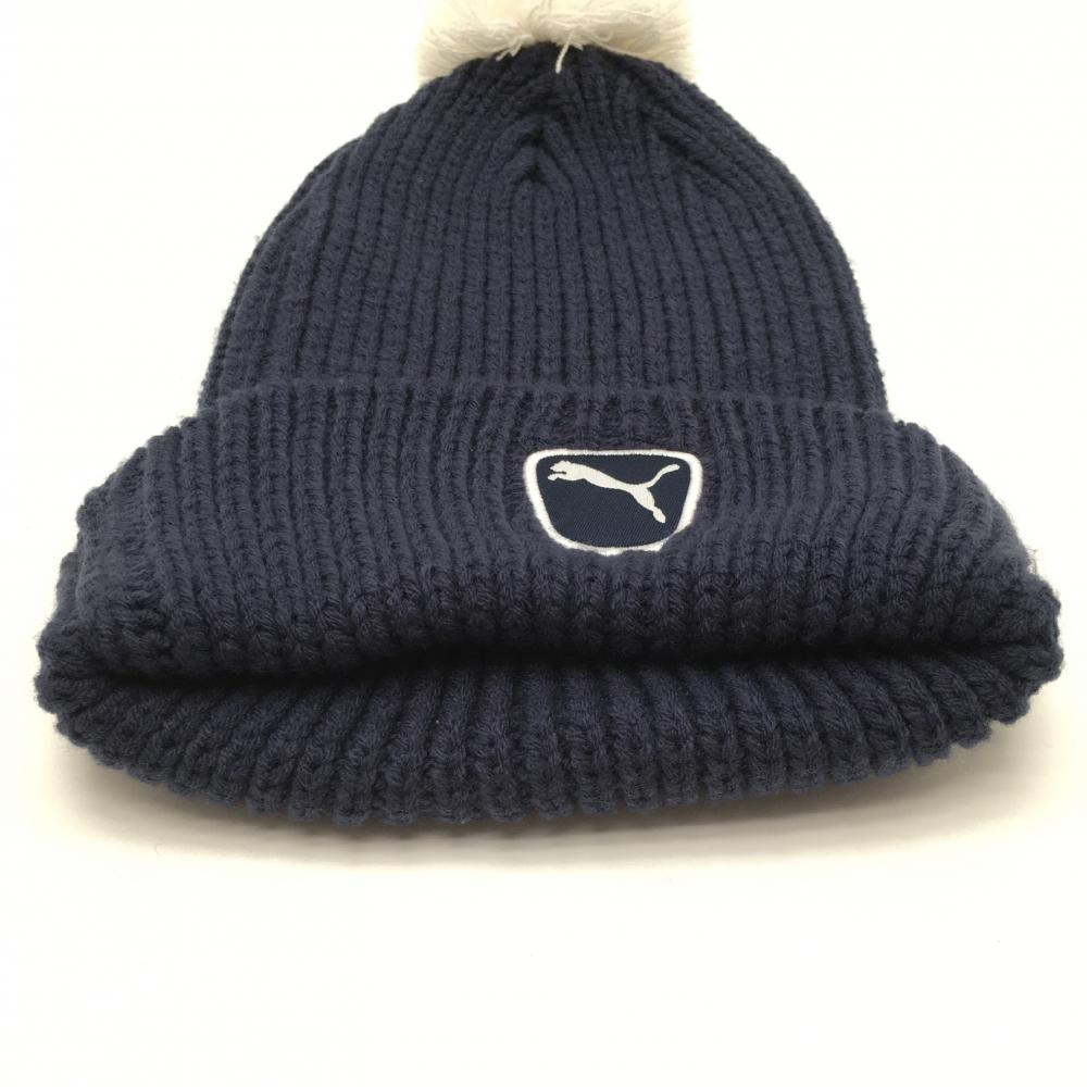 【超美品】プーマ ニット帽 ネイビー×白 アクリル100% ボンボン付 OSFA ゴルフウェア PUMA
